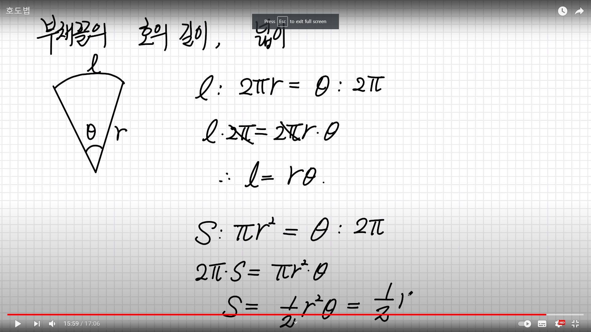 하지만 또 확실한 것 부터 차근 차근 정리하자면 호의 길이와 관련되어 있고 공식으로 간단히 나타내줄수 있다는 것이다.