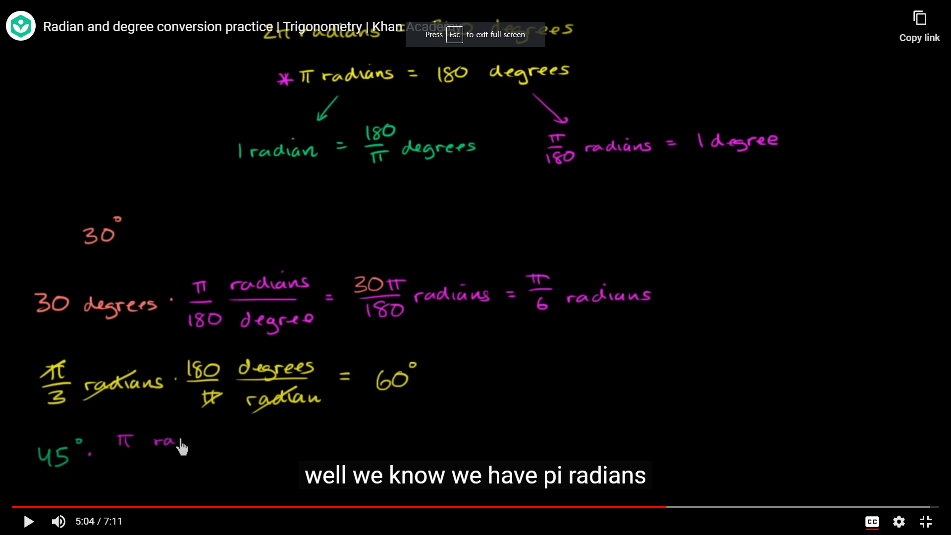 일단 라디안을 각도로 바꾸고 라디안을 다시 각도로 바꾸는 공식은 위와 같이