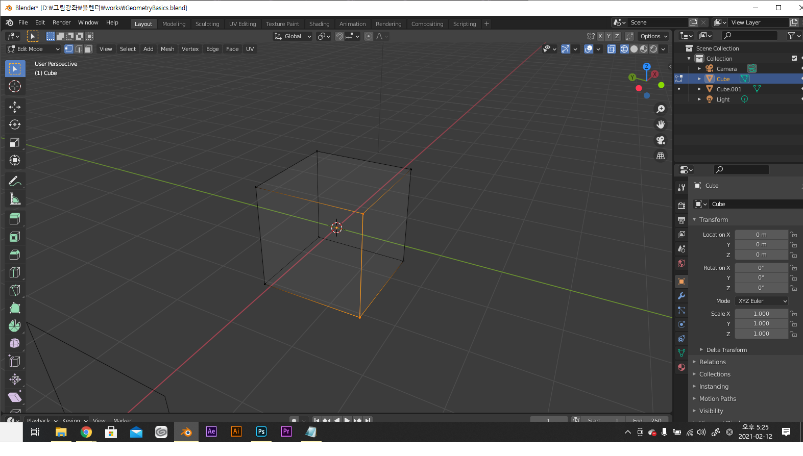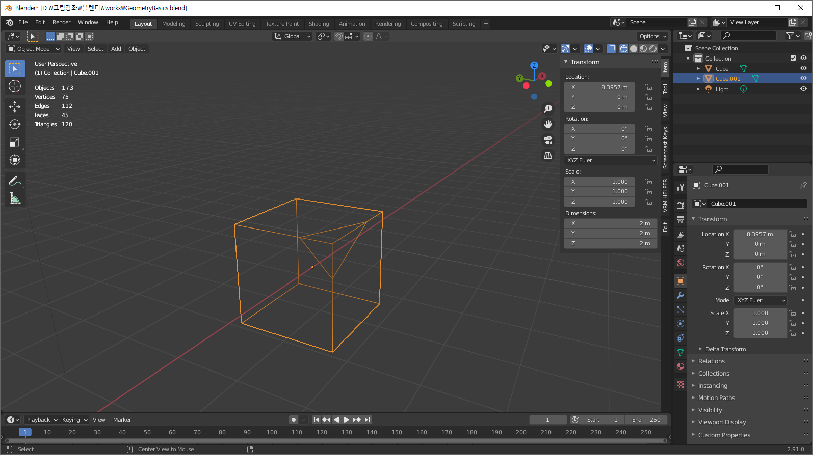 이번 단원은 블렌더랑 시너지 효과를 나타낼수 있음으로 글로 서술하기 보다는 블렌더에서 직접 기하학을 정리해보고