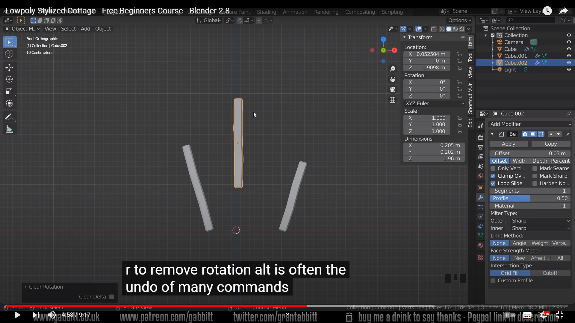 Alt+R을 누르면 모든 로테이션값을 0으로 만들어 로테이션을 무효화 할수있다.