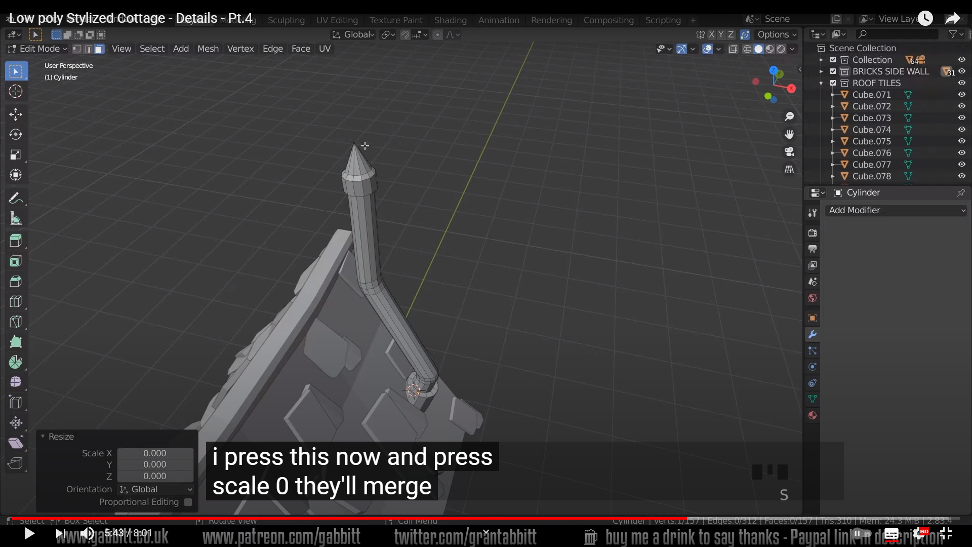 스케일을 0로하고 Merge vertexs를 하면 정점들을 합칠수 있따.