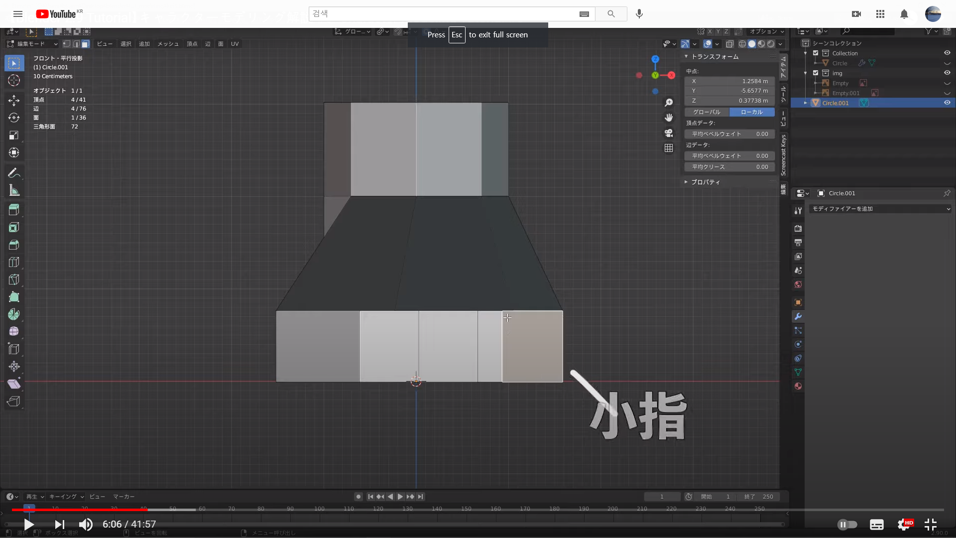 Ctrl+R를 해 루프컷이 발동하지 않을경우 중간에 사이 정점들을 subdivide를 해서