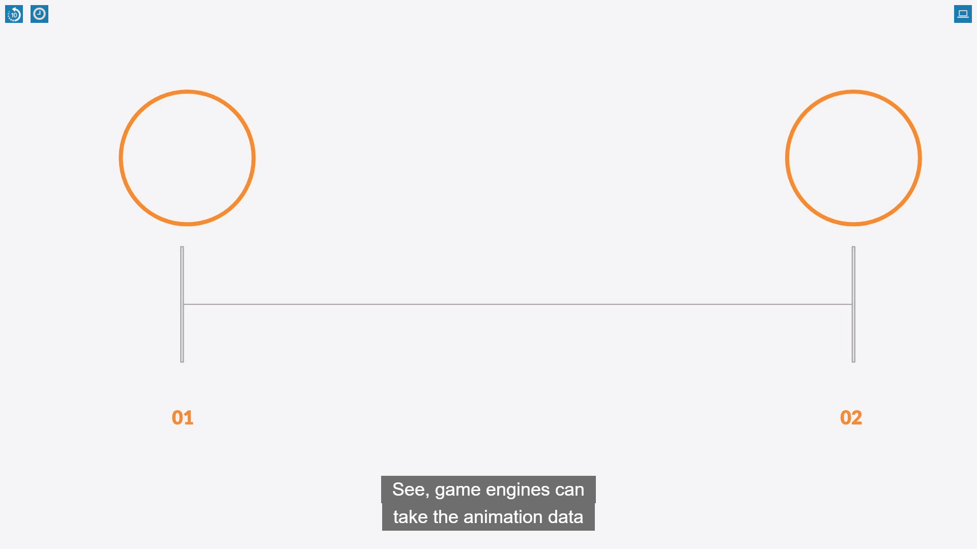 See, game engines can take the animation data and then sample the subframes that's in between each one of these frames, and upsample it to translate it into 60 frames per second.