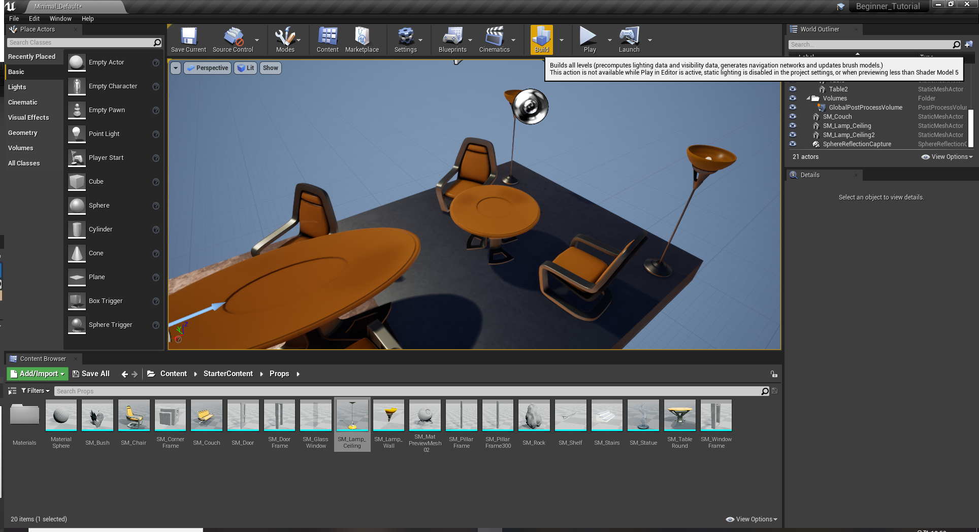 라이팅을 빌트 하기위해서는 빌드를 클릭하면 된다. 아마 다른 것도 변경 할시 빌드를 누르면 될꺼 같다.