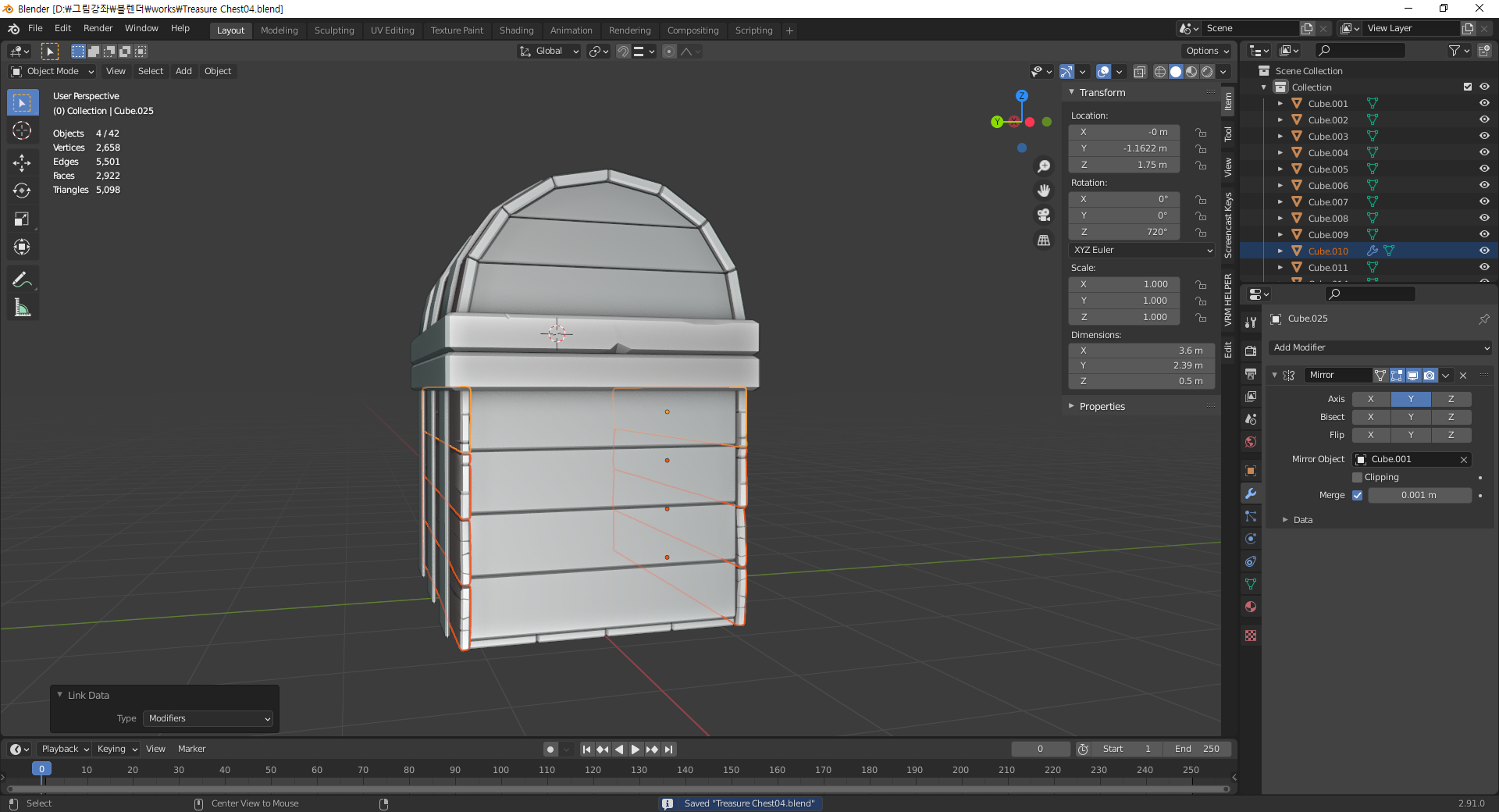 모디파이어를 일괄적용할 오브젝트를 적용해 작업을 단축하는 방법을 설명해주고 마무리