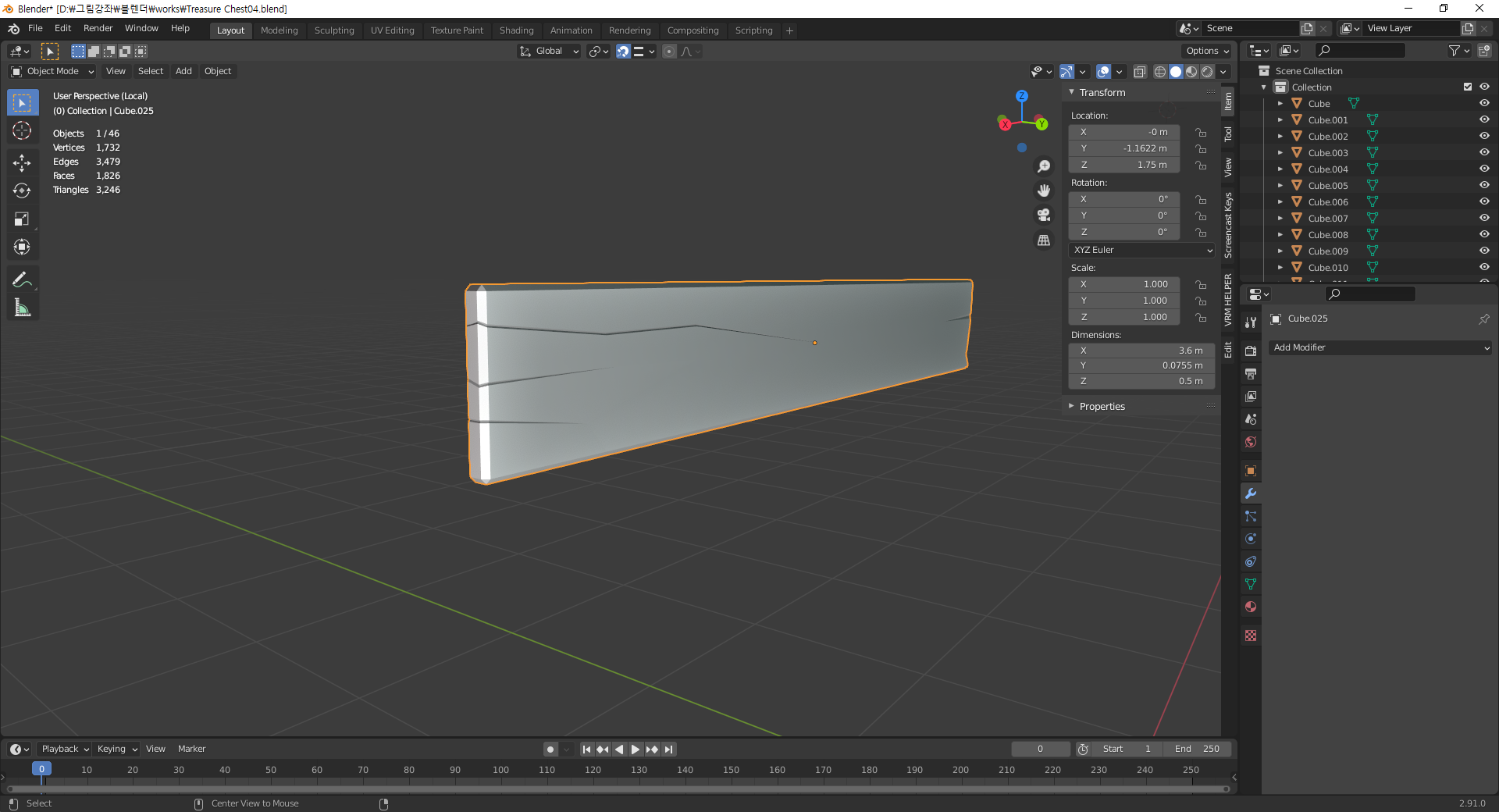 나무 판자 만들기는 은근 어렵지 않다. 좀 더 디테일하게 만들거면 중간에 루프컷을해서 기울이거나