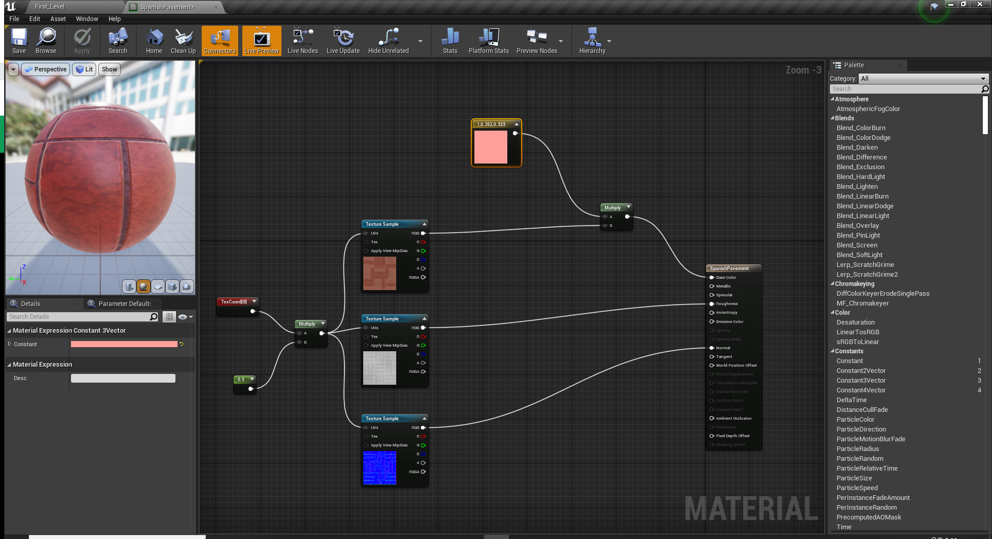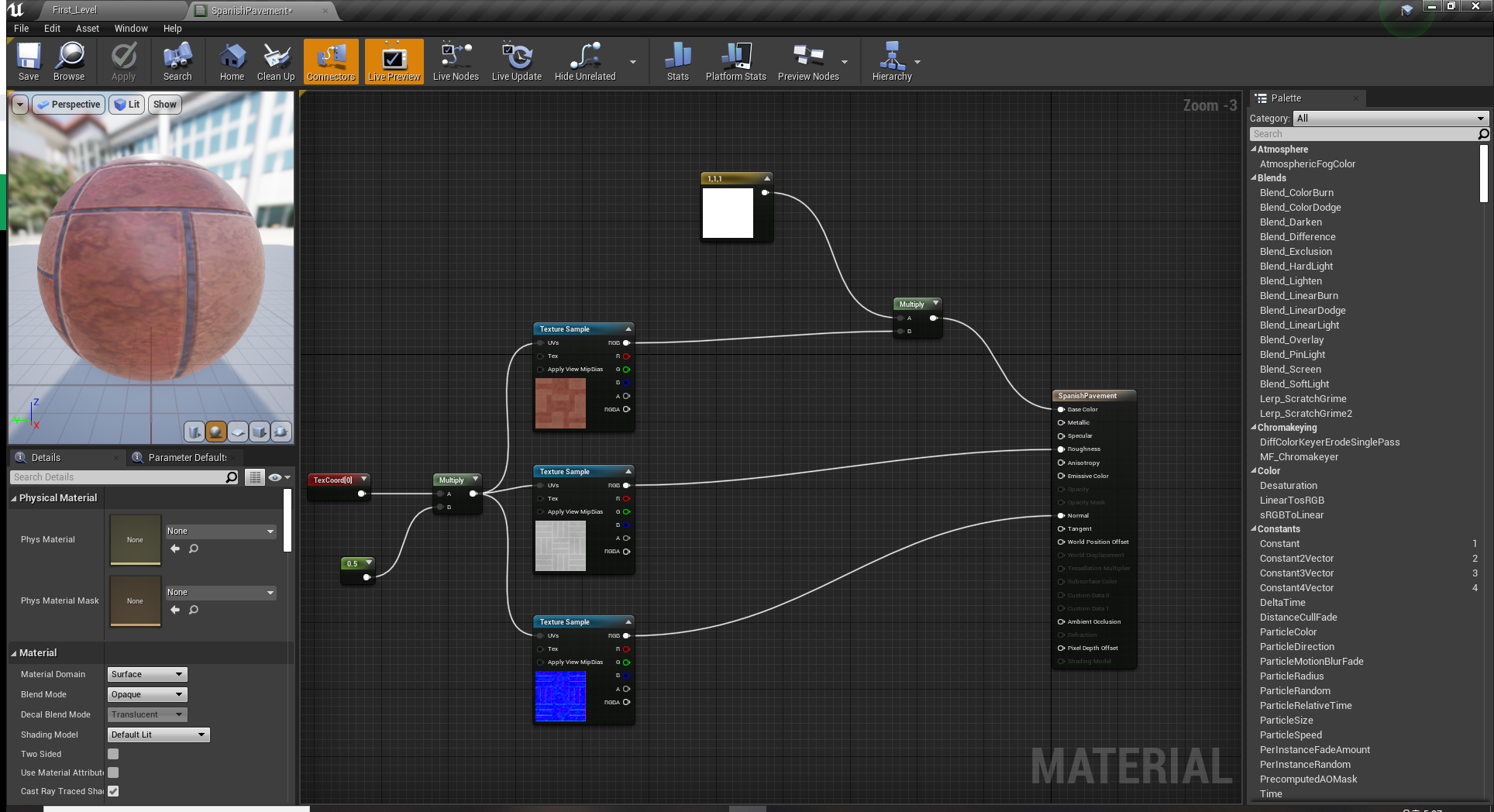 이제 바닥이 메테리얼 인스턴스와 잘 연결되어있다면 실시간으로 바꿀수 있다.