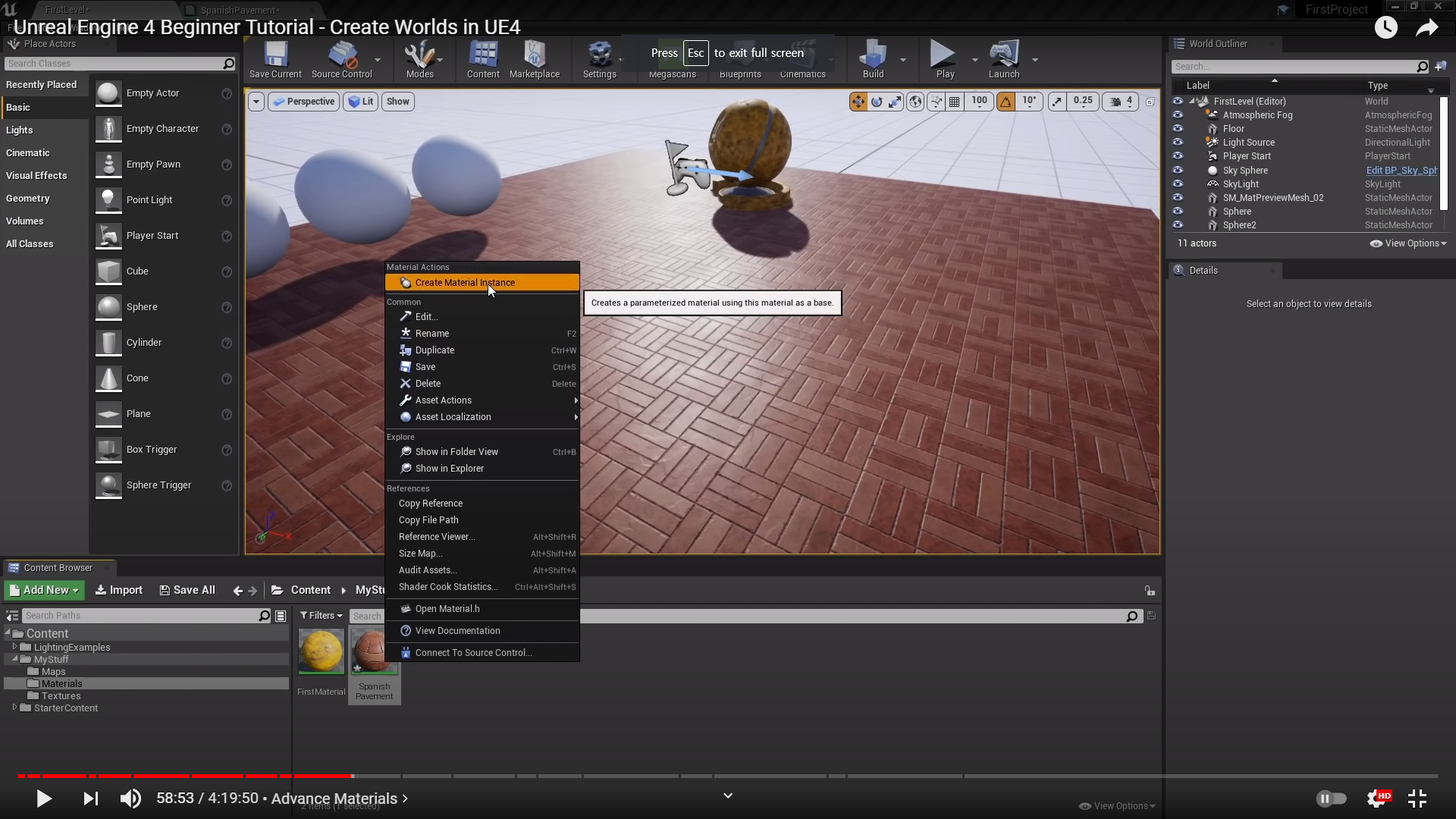 We can create Material Instance by going to where our material is .