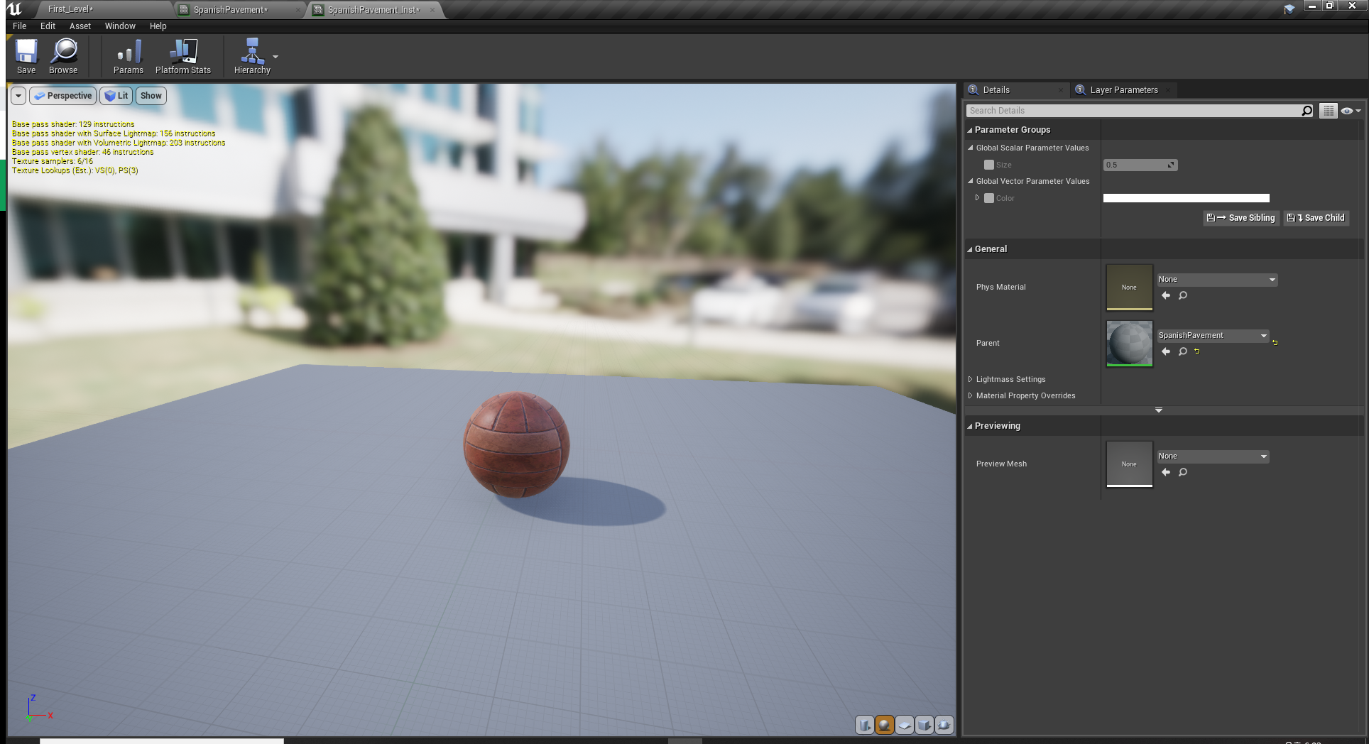 (Material Instance View 서 조작법은 일반 ViewPort 하고 다르다. 오직 마우스로만 움직이는것 같다.)
