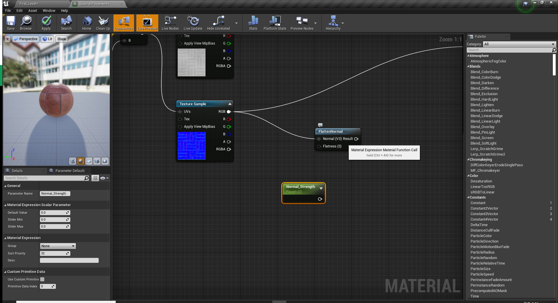 노말맵과 Flatten Normal 노드를 연결 시킨다.