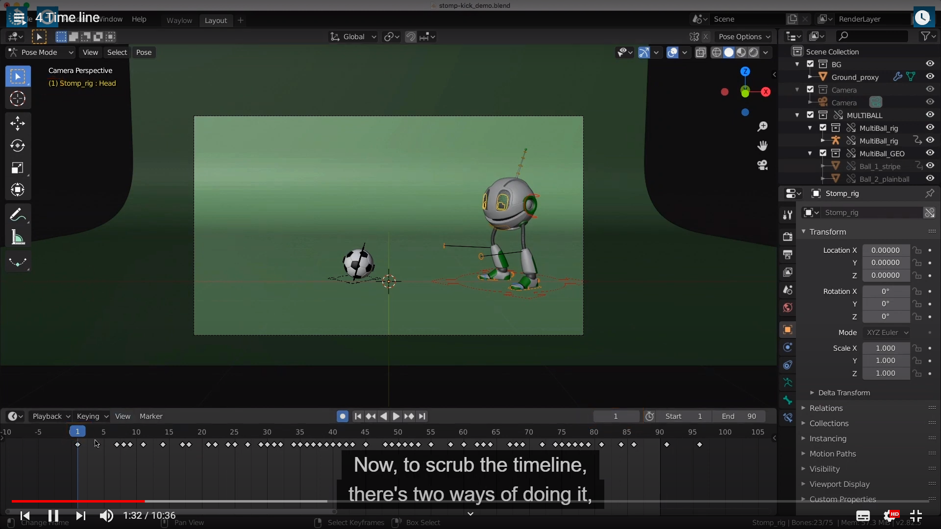 Now, to scrub the timeline, there's two ways of doing it, you can click anywhere