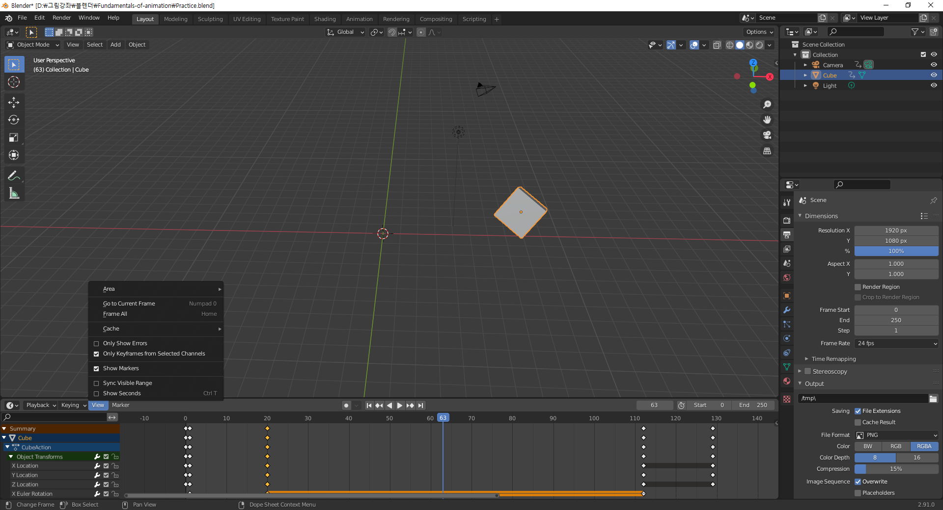 여기까지해서 대략 전반적으로 블렌더 timeline 애니메이션 단축키들을 살펴본거 같다.
