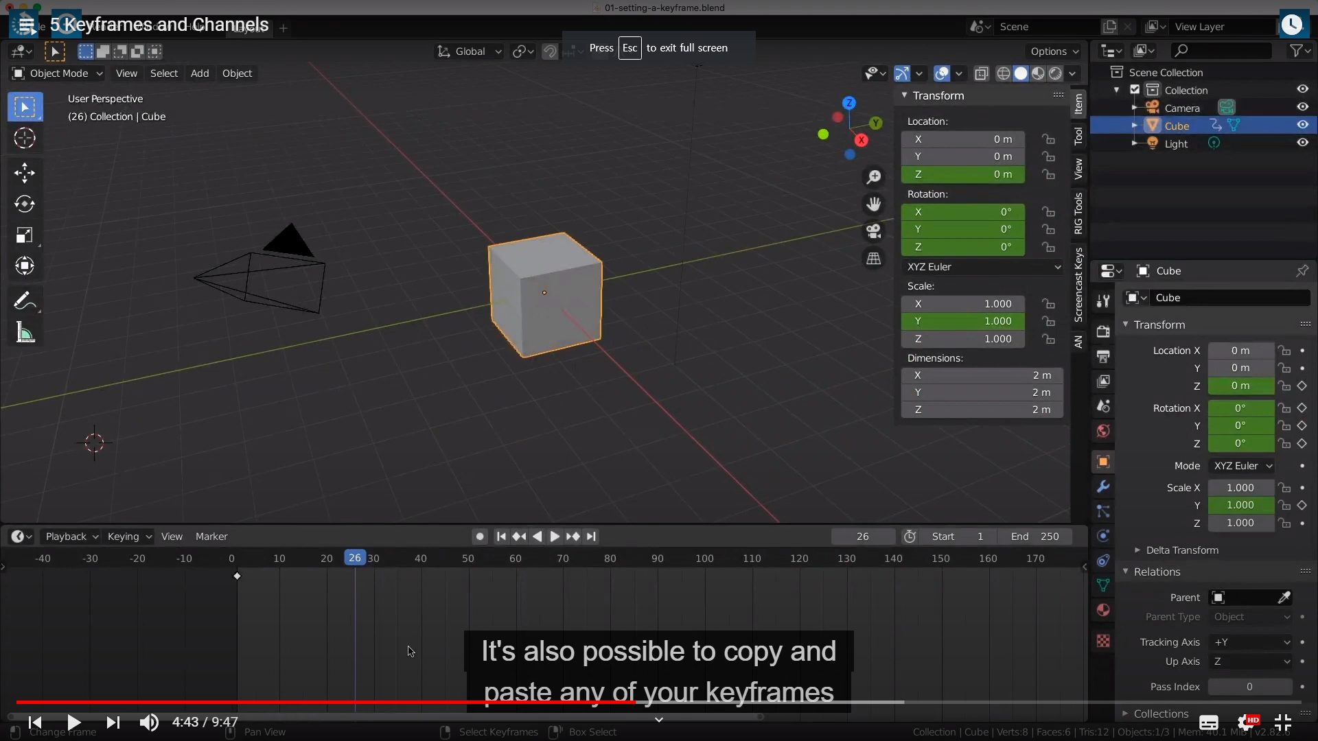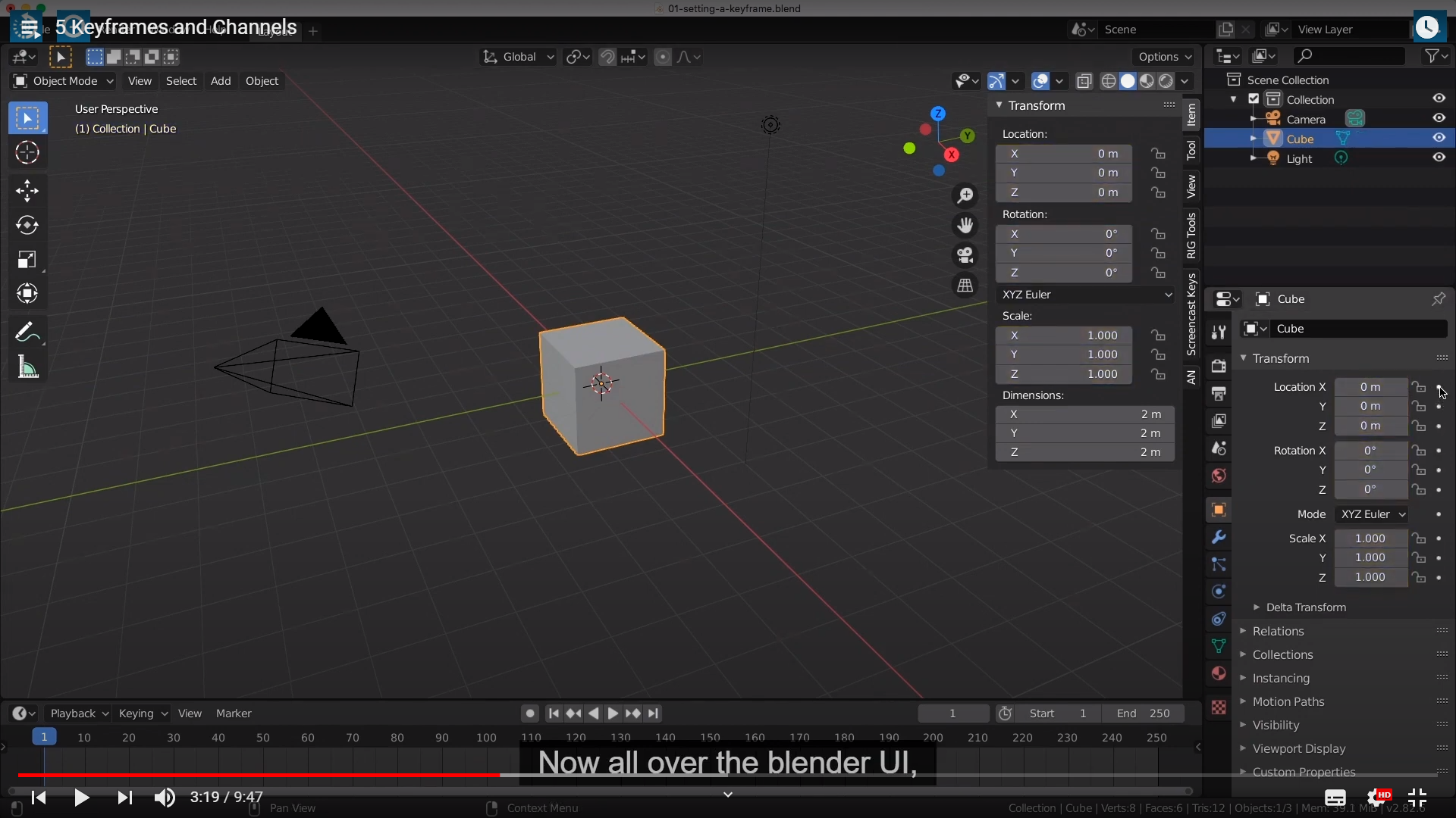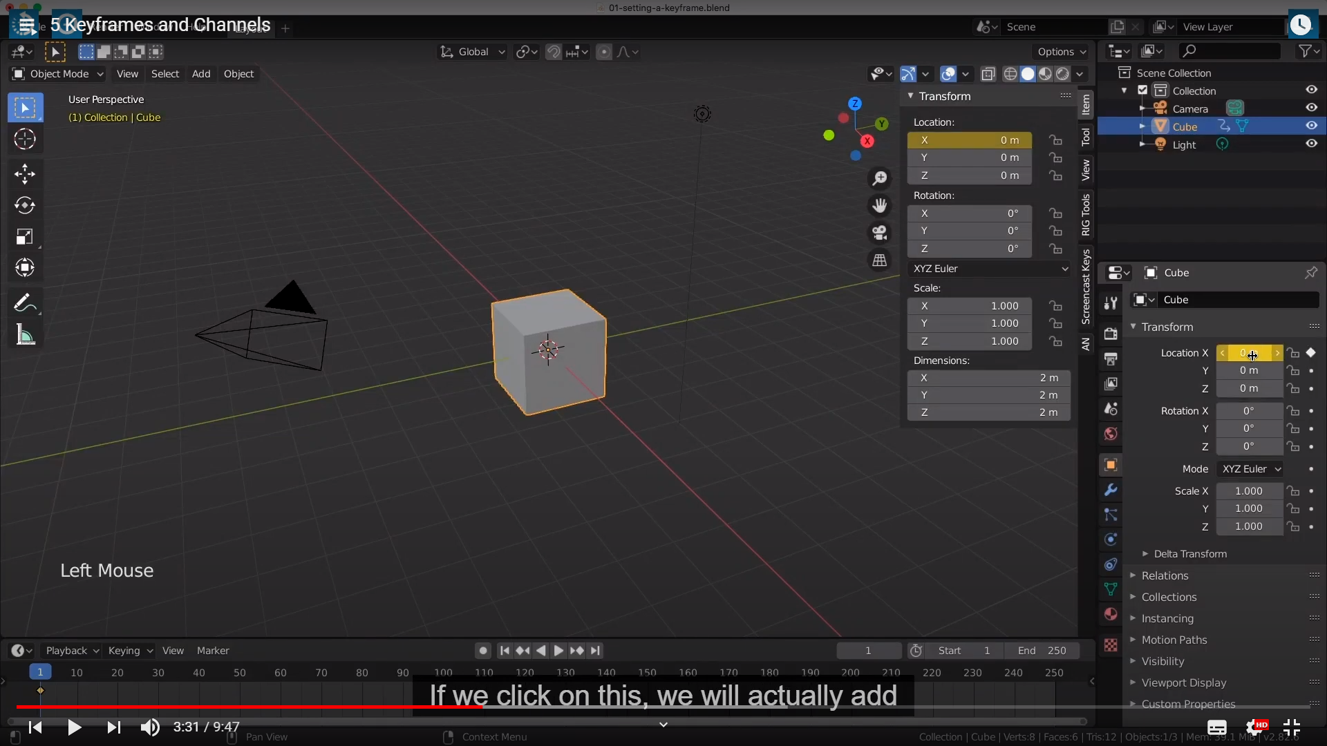Now, There are many different ways you can add a keyframe in blender.The first way is by hovering over any channel that you want to set a keyframe on,