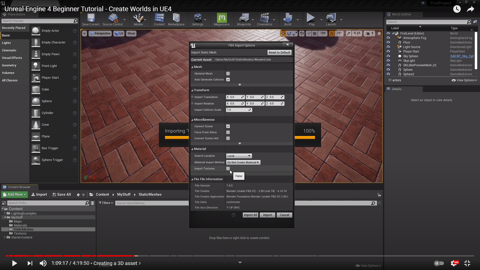 will be assoicate with all the normal maps and all the base color, roughness, metallic map, that we have already gone.(3D assets들을 임포트 하기전에 다시한번 개념을 정리해준것 같다. )