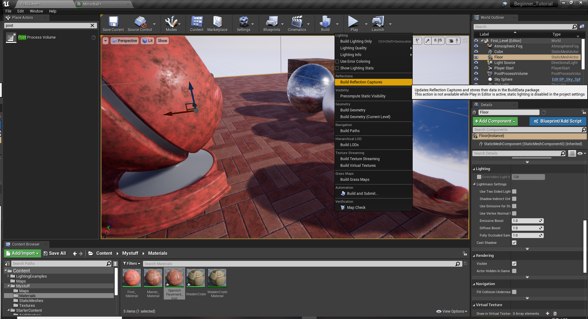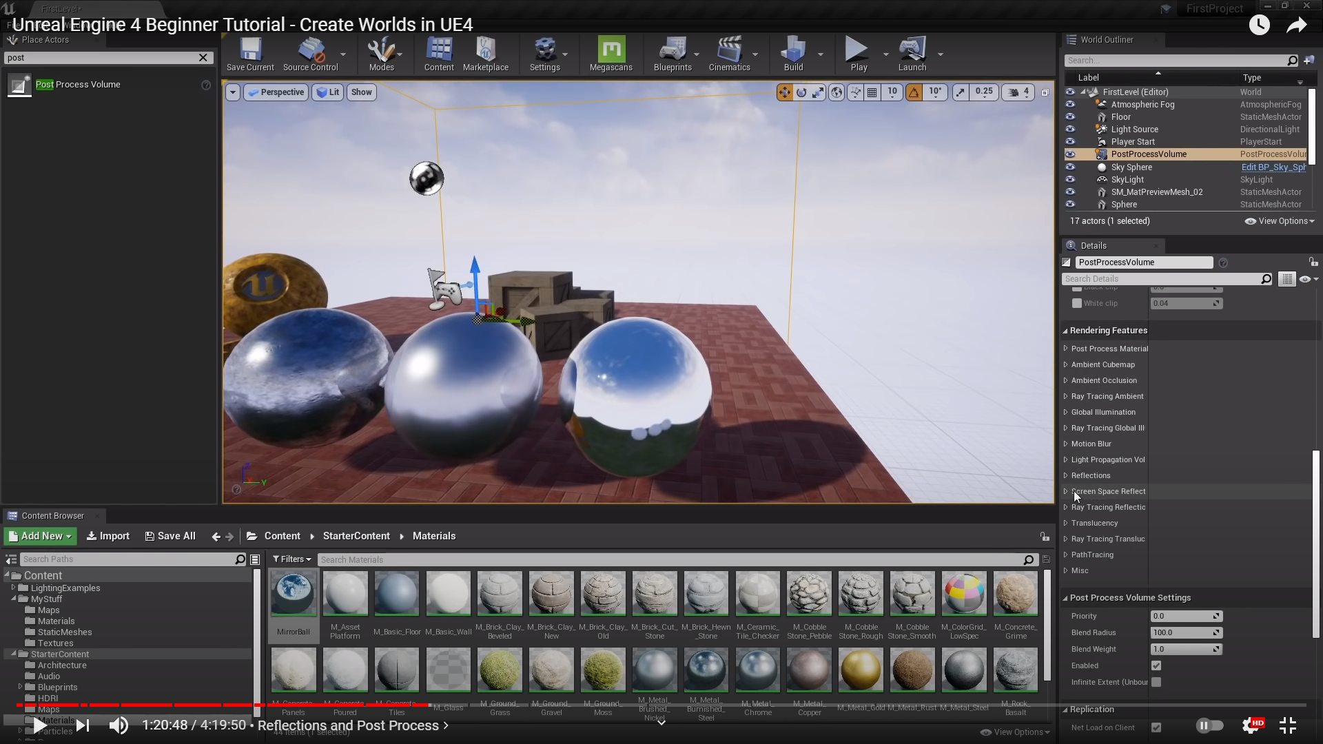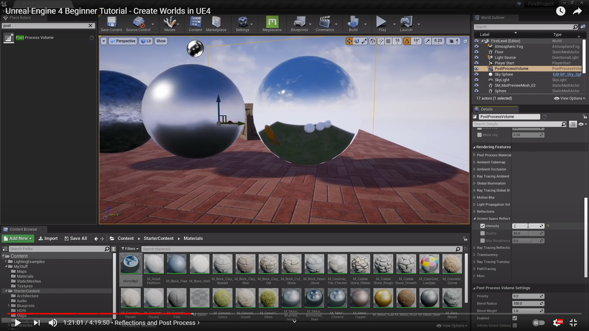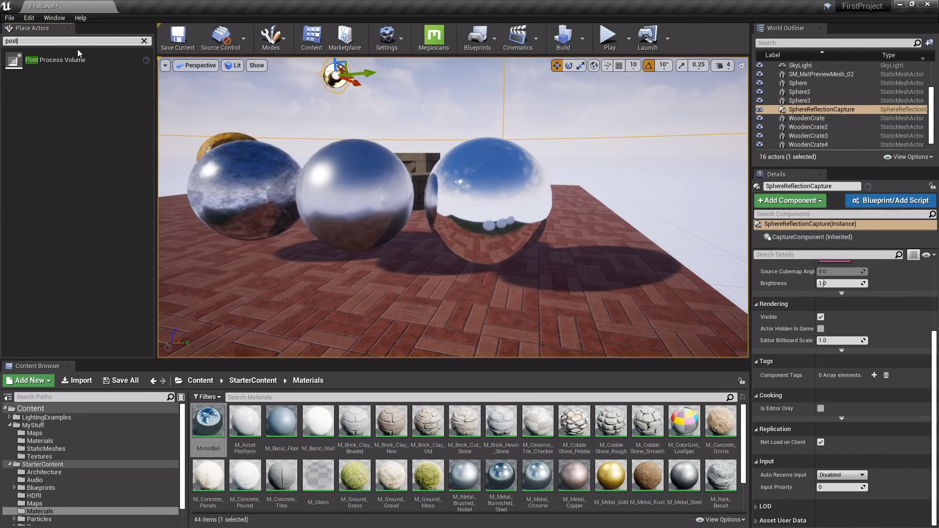 before jump into lighting section, let 's go over how reflection working unreal and also how the post process volume works