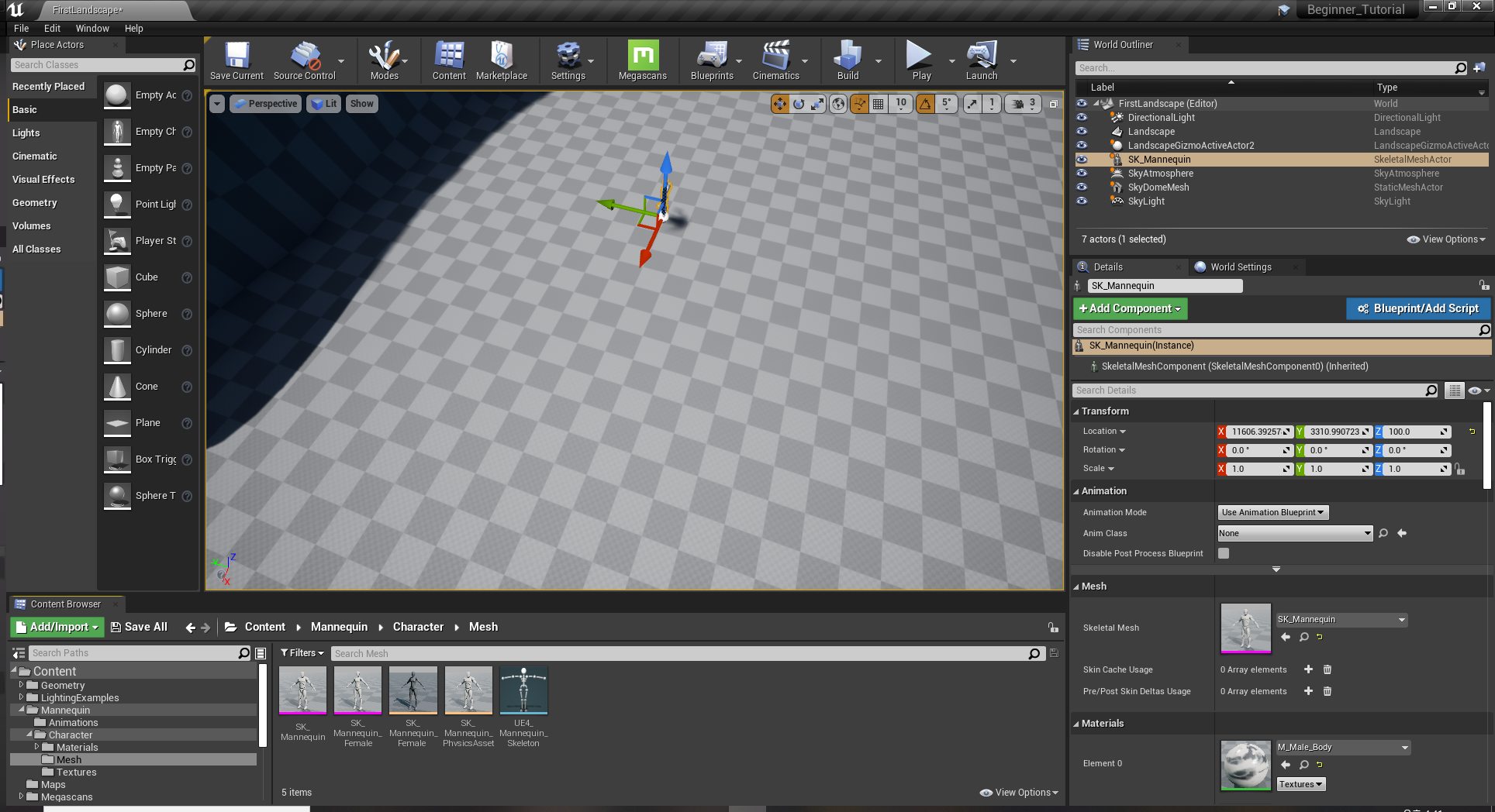 그리고 새로 생성된 Mannequin 폴더에서 SK Mannequin을 꺼내서 배경과 비교해 준다.