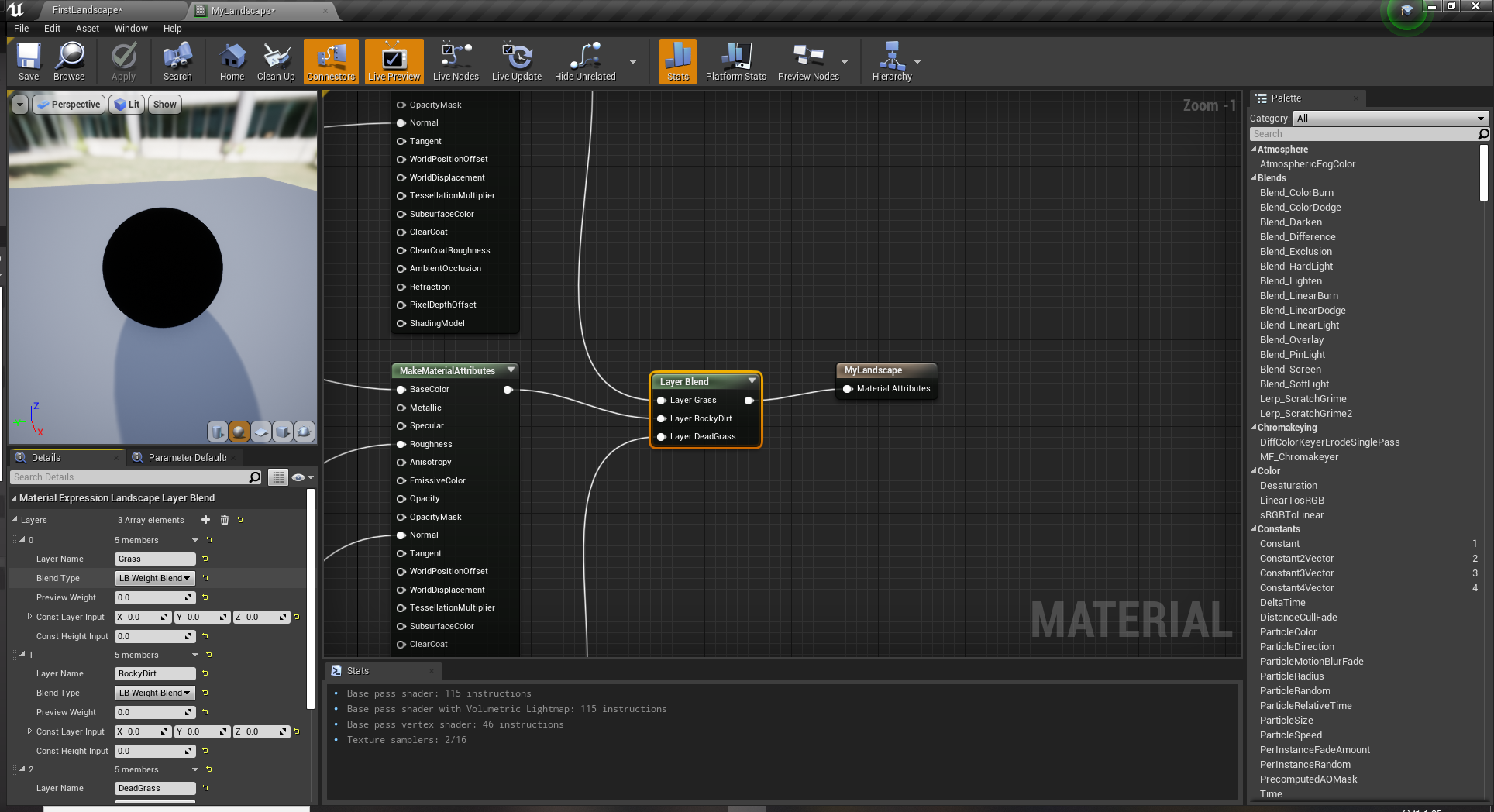 그리고 그것을 위해 LandscapeLayerBlend를 노드에 추가 시키고