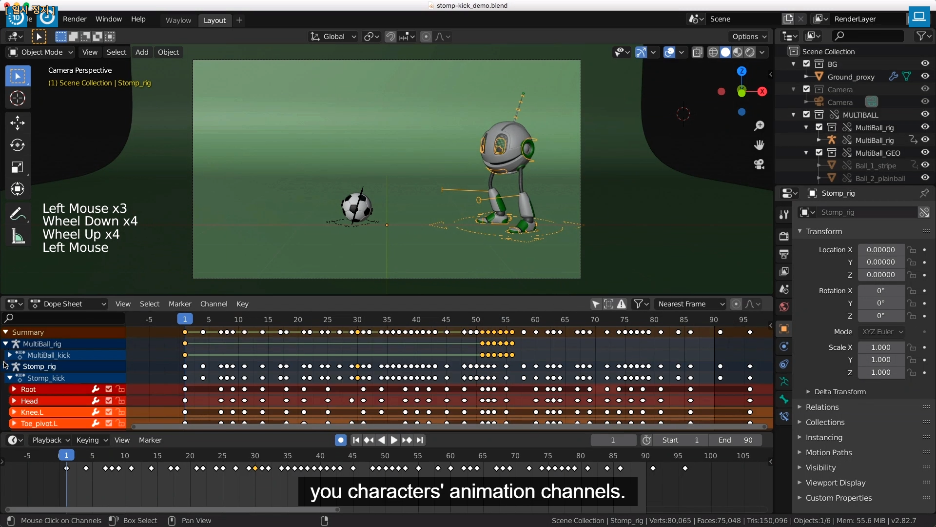 Dope Sheet 에서는 해당씬에 있는 모든 채널을 보여준다.