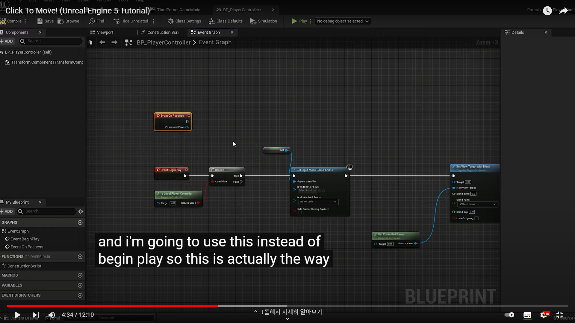 Event Possess(이벤트 소유)는 멀티플레이어용으로 설명을 하기 위해 생성