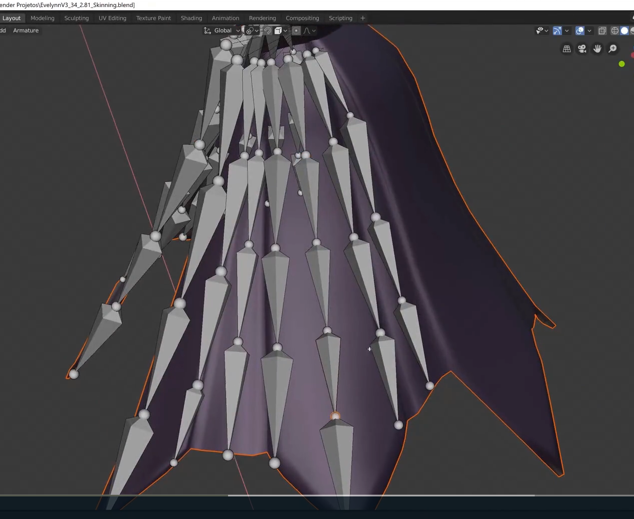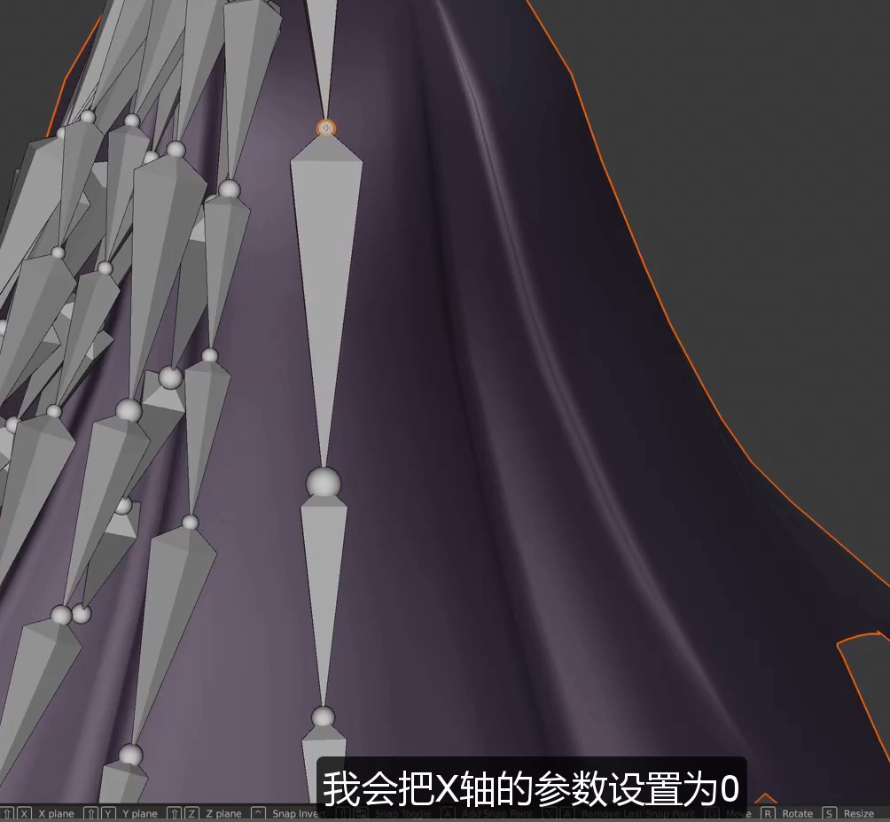 10강에서는 치미 윗단을 리깅하고 지금은 치마 아랫단을 리깅중