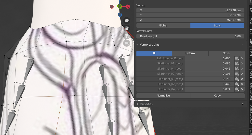 오브젝트별로 Vertex Groups의 연동되는 본을 확인할수있으며