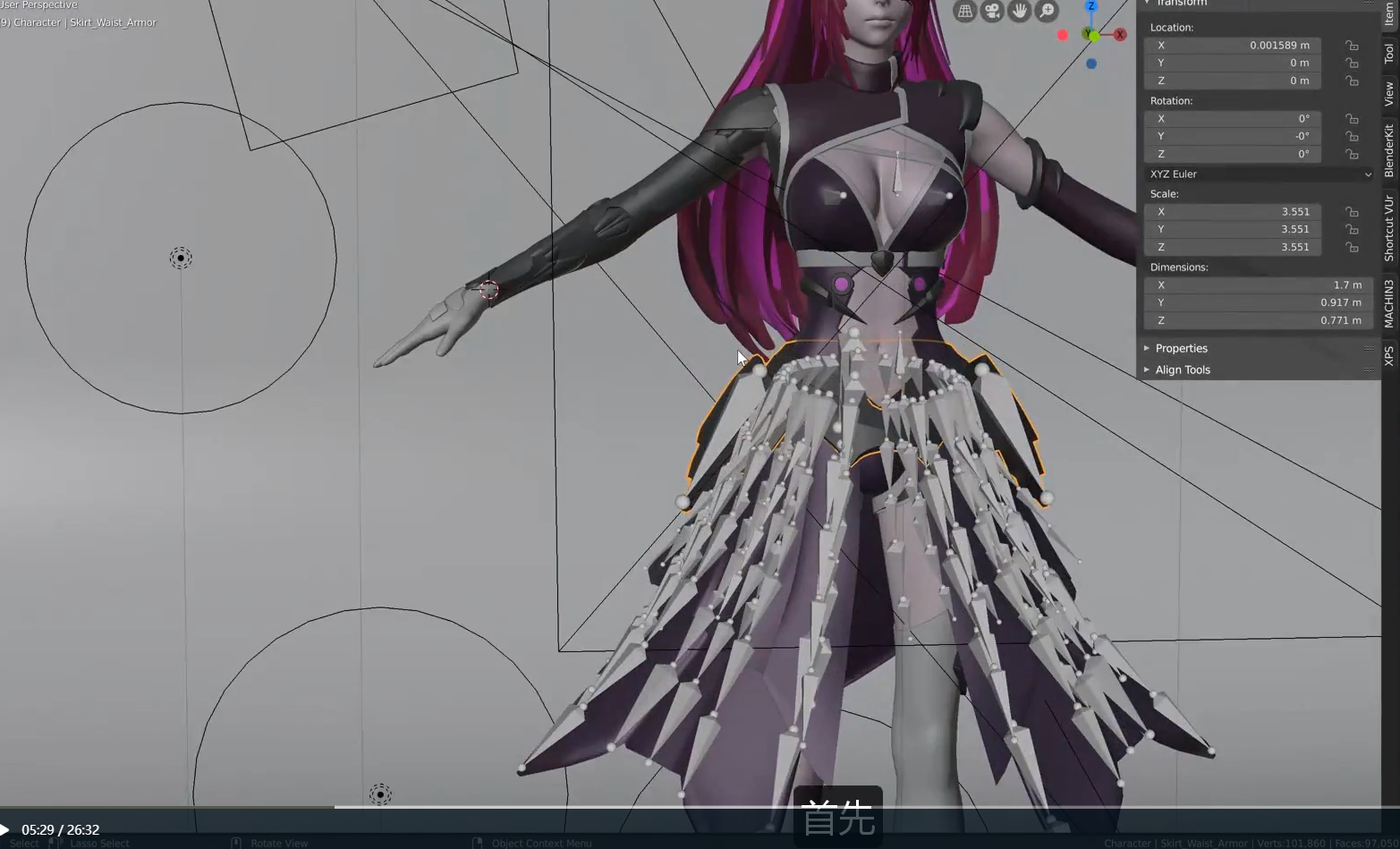 한가지 이해 안가는건 중간에 갑옷에 pelvis라는 버텍스그룹을 따로 넣어놨는데 나중에 본하고 연결할수있는지 의심간다.