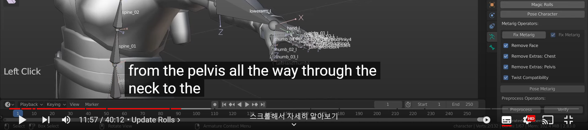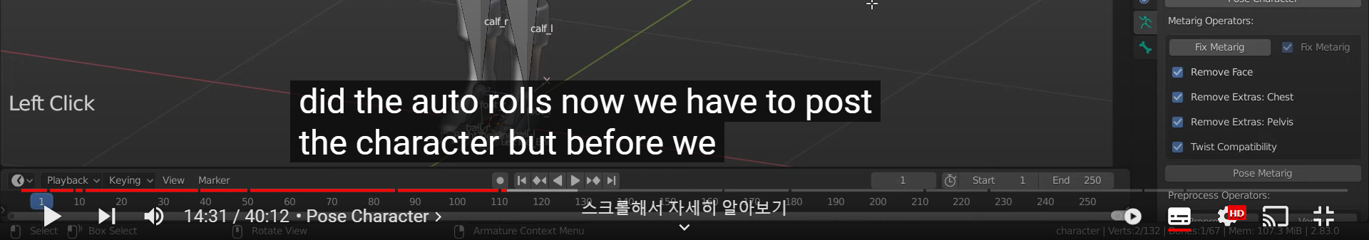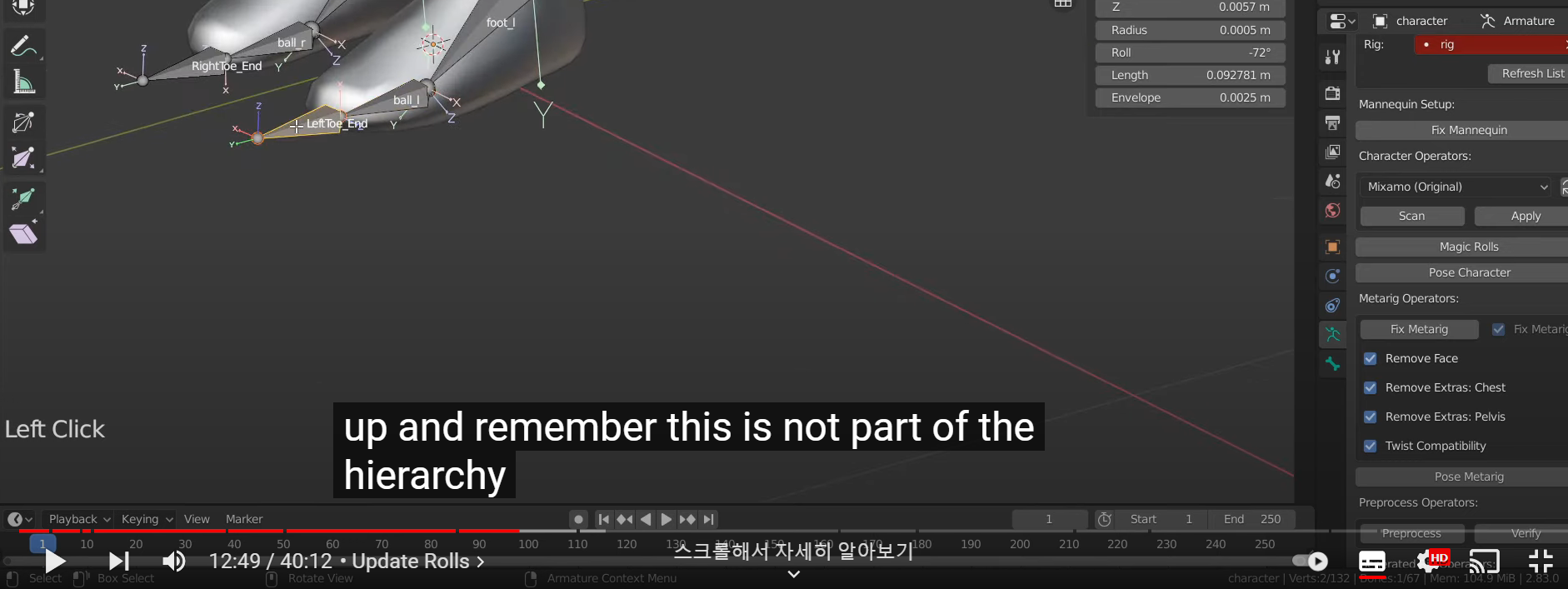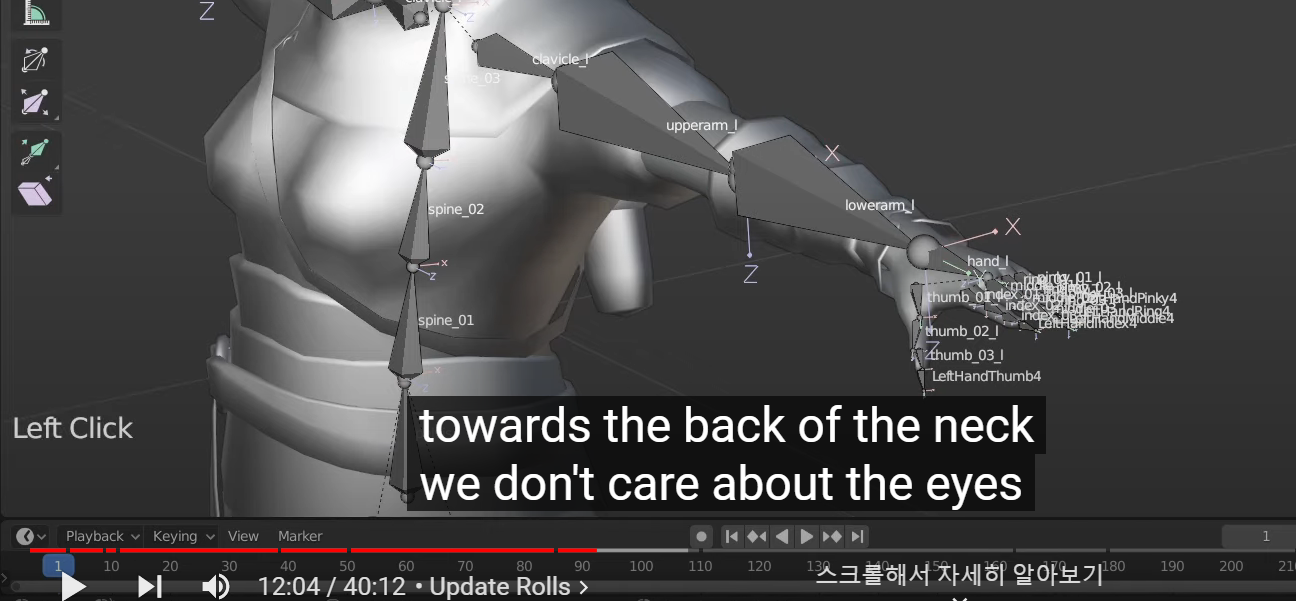 2. Update the bone rolls (추측으로는 본의 회전축, xyz 축을 알맞게 하는걸로 생각됨)