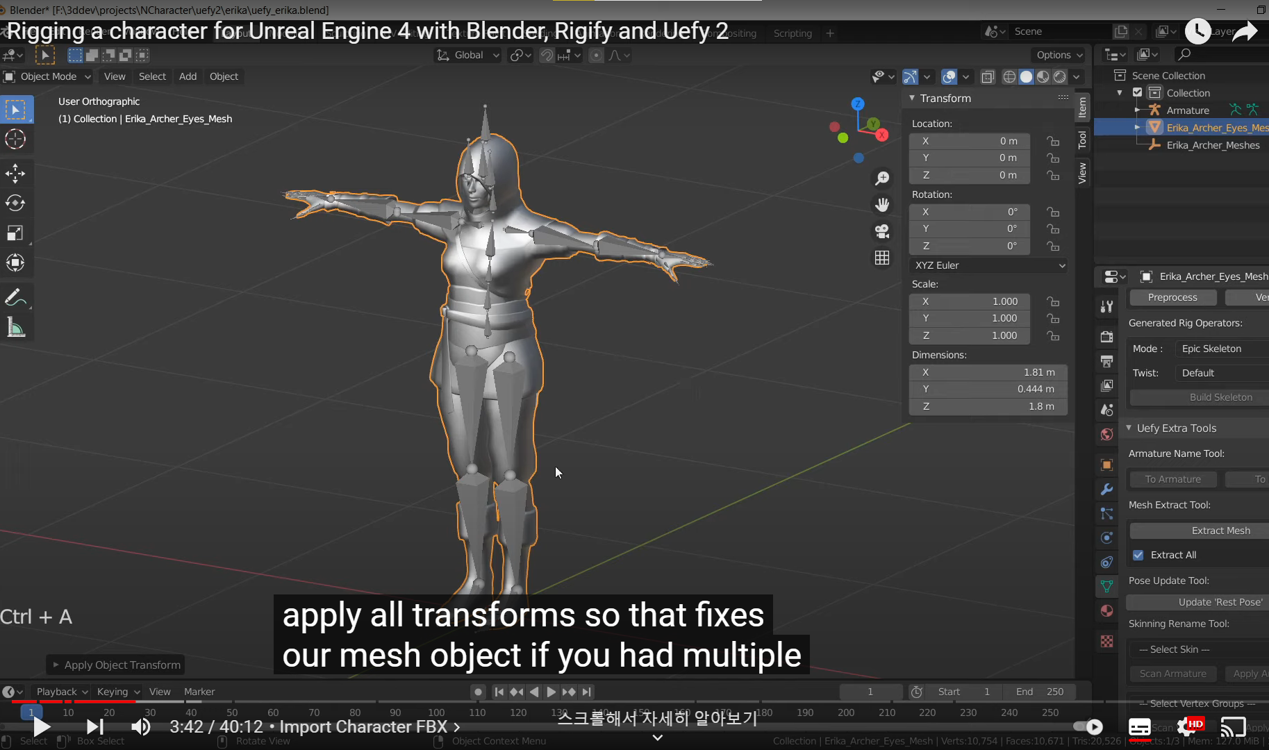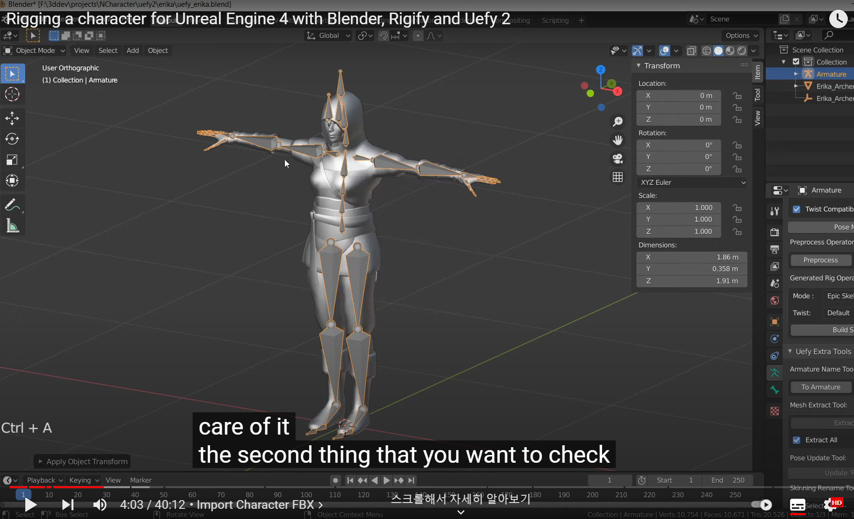 Mesh 뿐만 아니라 Armature 도 확인해서 Apply