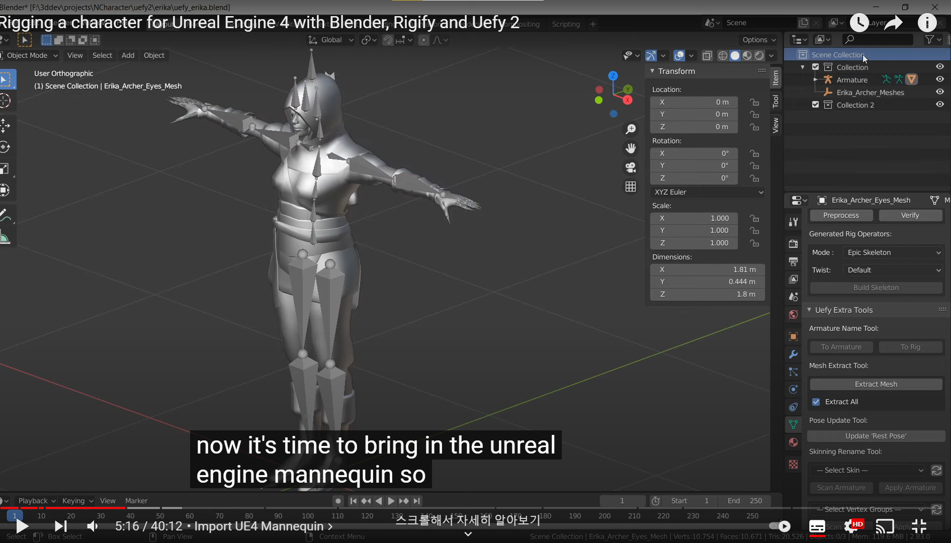 You might wonder why don't I use this Skeleton that is already has one you will be locked out of a lot of functionality that the engine offers if you don't have the correct bone hierarchy hierarchy also the most important reason is that this skeleton is not suitable for creating animations if you want to make new animations you need a proper animation rig like the one that prigify provides 요약 : 언리얼 엔진으로 애니메이션을 임포트하거나 새로 만든 애니메이션을 적용 시키고 싶다면 본의 계층 구조를 언리얼 엔진과 동일시 시킬 필요가 있다. a brief overview There are three stages to rigging this character
