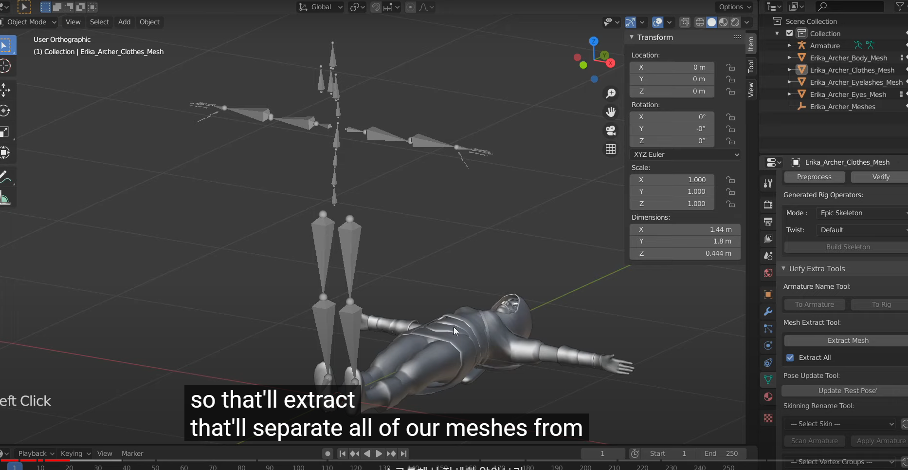 So that will extract that'll separate all of our meshs from the armature so