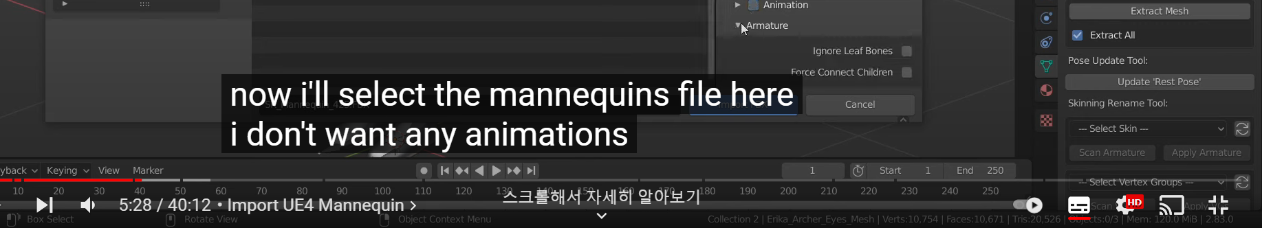 다음으로는 언리얼 엔진에 마네킹 뼈대를 가져오기 위해 따로 컬렉션을