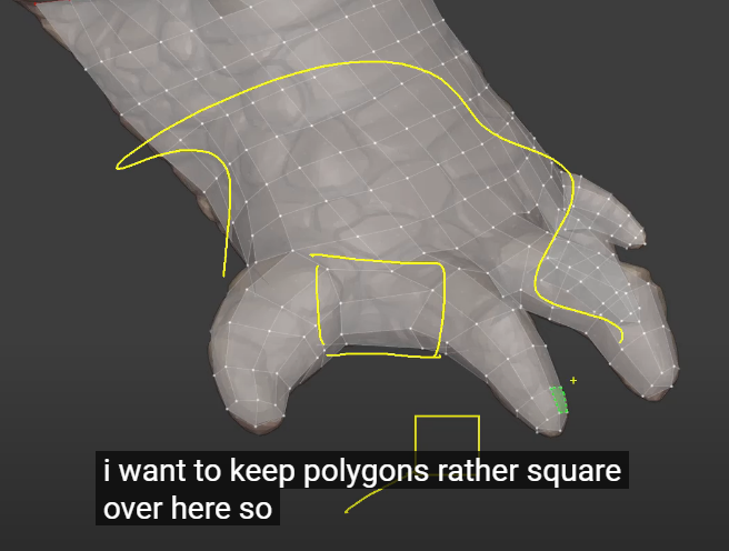 So I will actually start retopologizing the fingers and