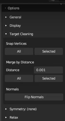 3. Options -> Target Cleaning ->snap vertices all