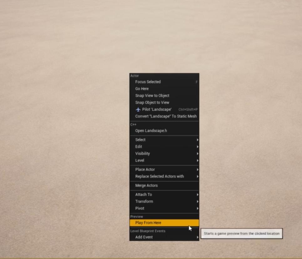 뷰포트에서 우클릭후 Play From here 를 누르면 PlayerStart Actor의 위치가 변경되는게 아니라 여기서 바로 임시적으로