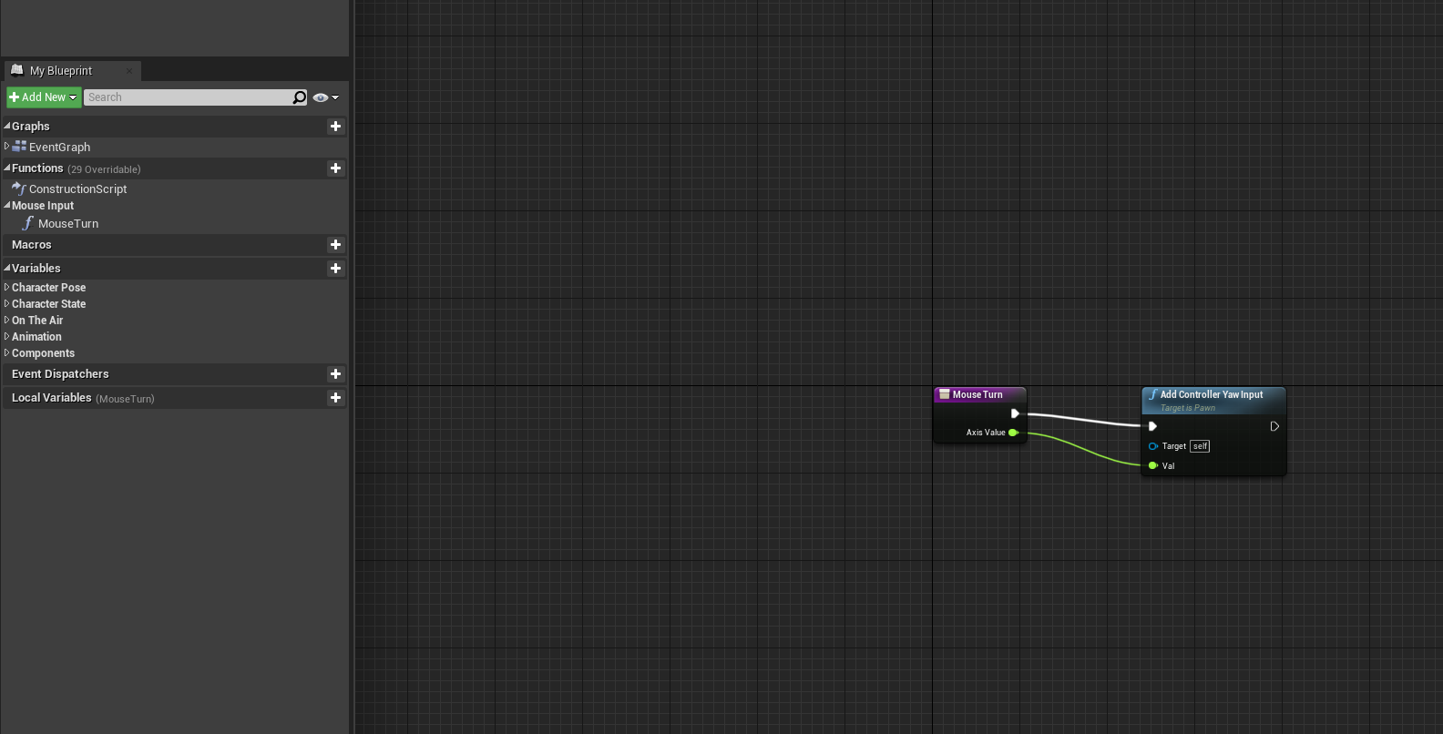 즉, 다시 말해 이번 강의에서는 입력(MyPlayerController)-처리(Mycharacter)-출력(MyAnimBluePrint)로 나뉘어지는것을