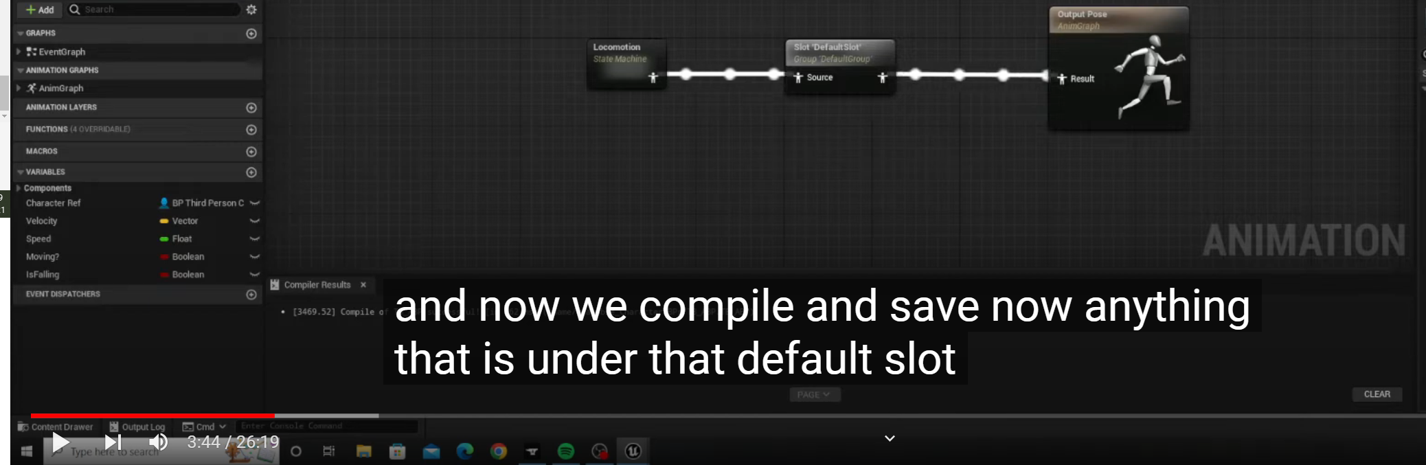 2. a default slot running through our anim graph 라고하는거 보면 이 슬롯은 Anim graph에서 작동 매커니즘을 설정하는걸까?
