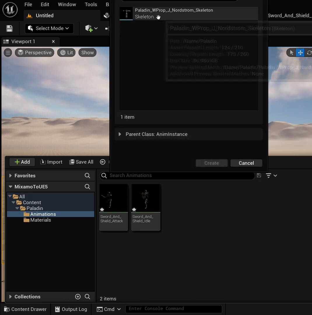 애니메이션 블루프린트를 만든 다음에 다시 스켈레톤을 팔라딘으로 설정함