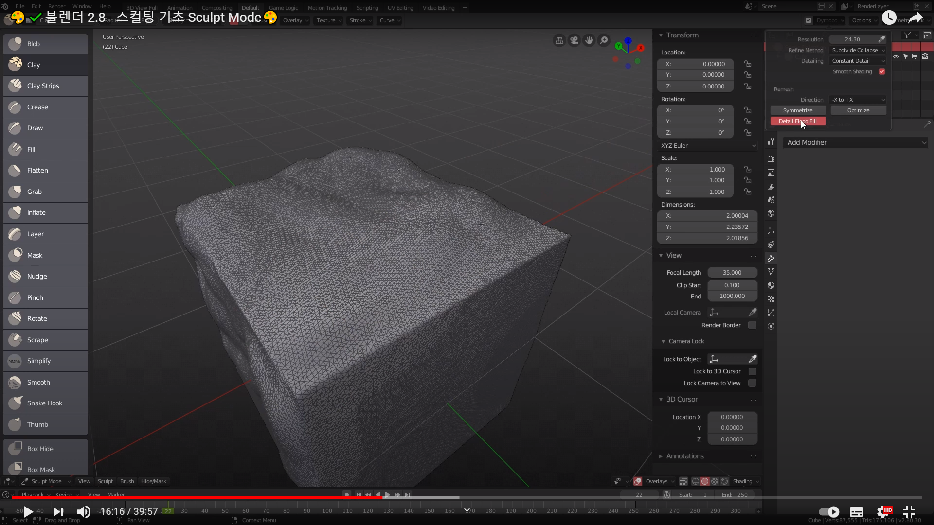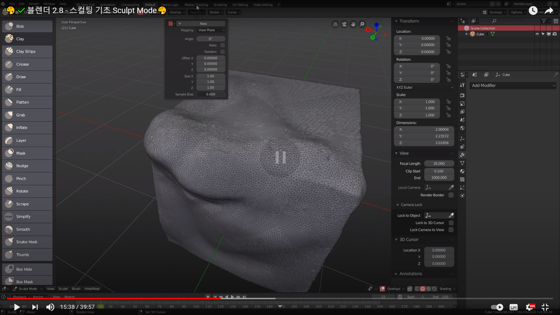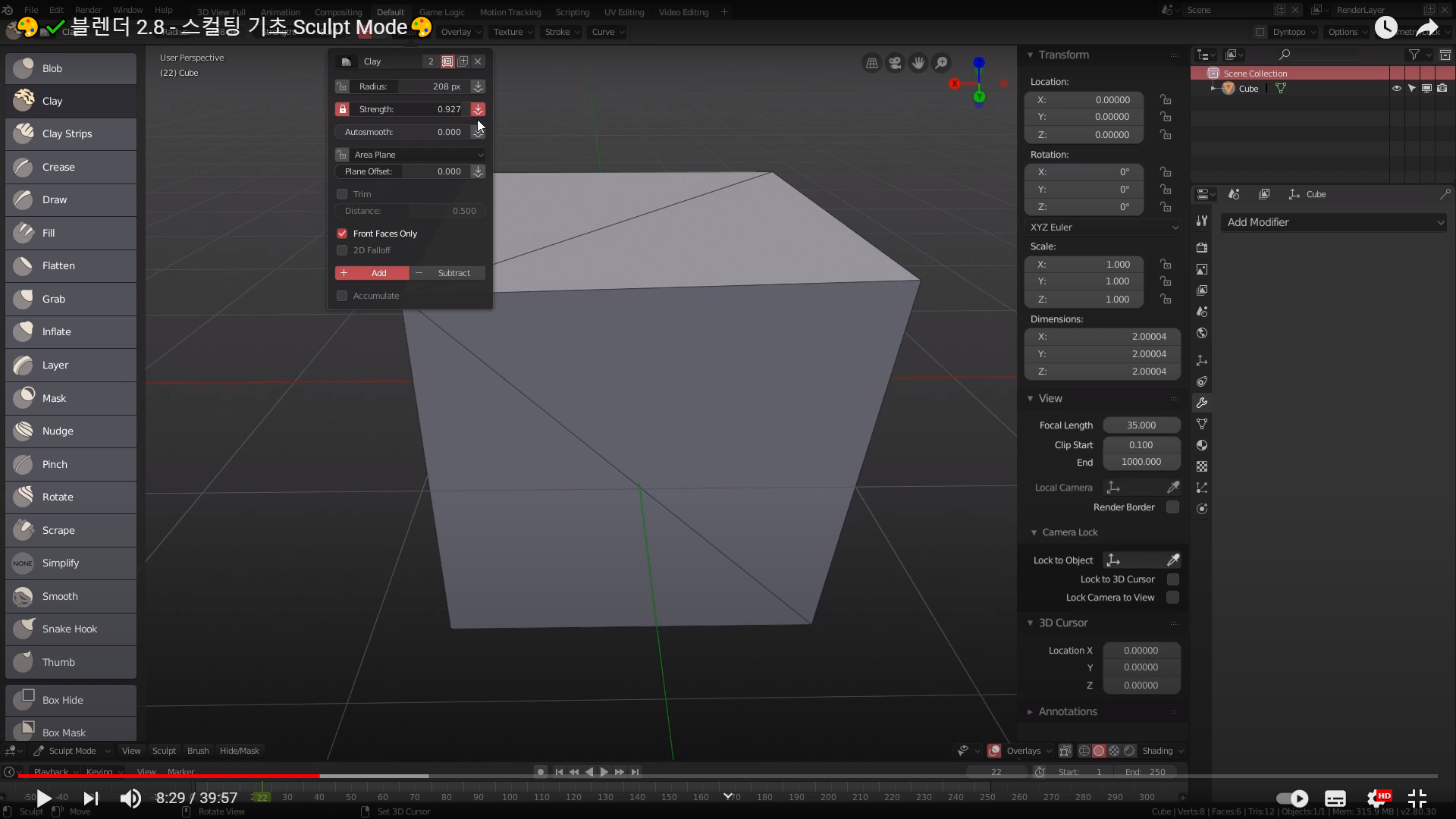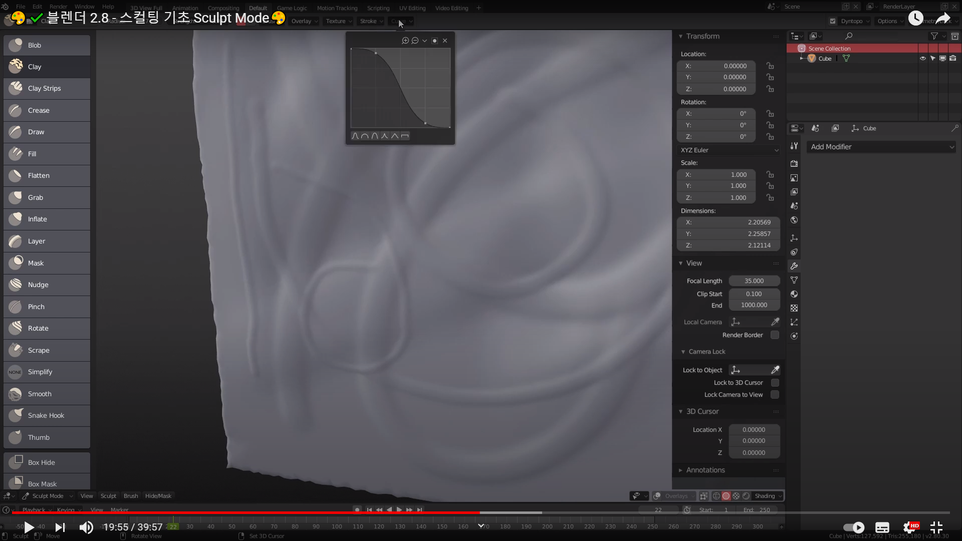 블렌더 스컬팅을 좀 더 본격적으로 공부하기전에 예전에 본 스컬팅 기초 영상을 다시 한번 기록하면서 보고자 한다.