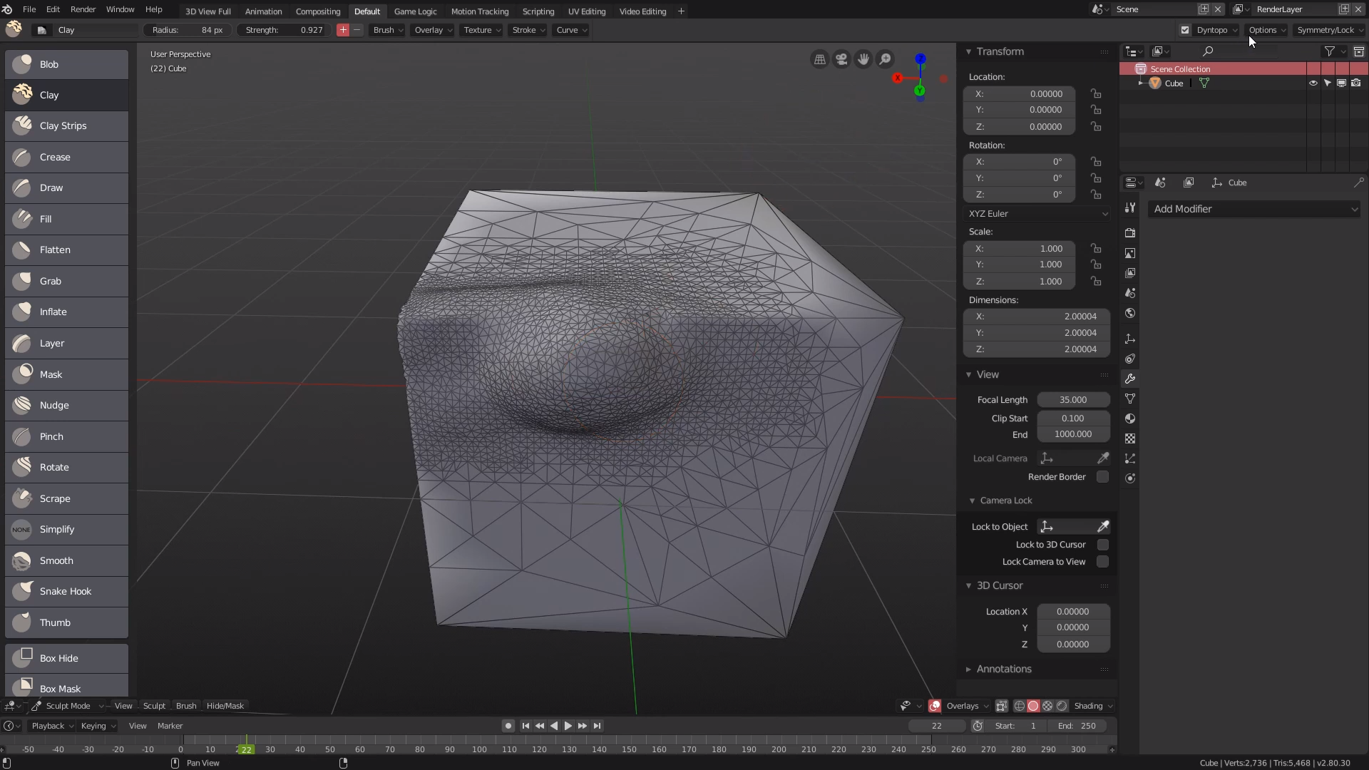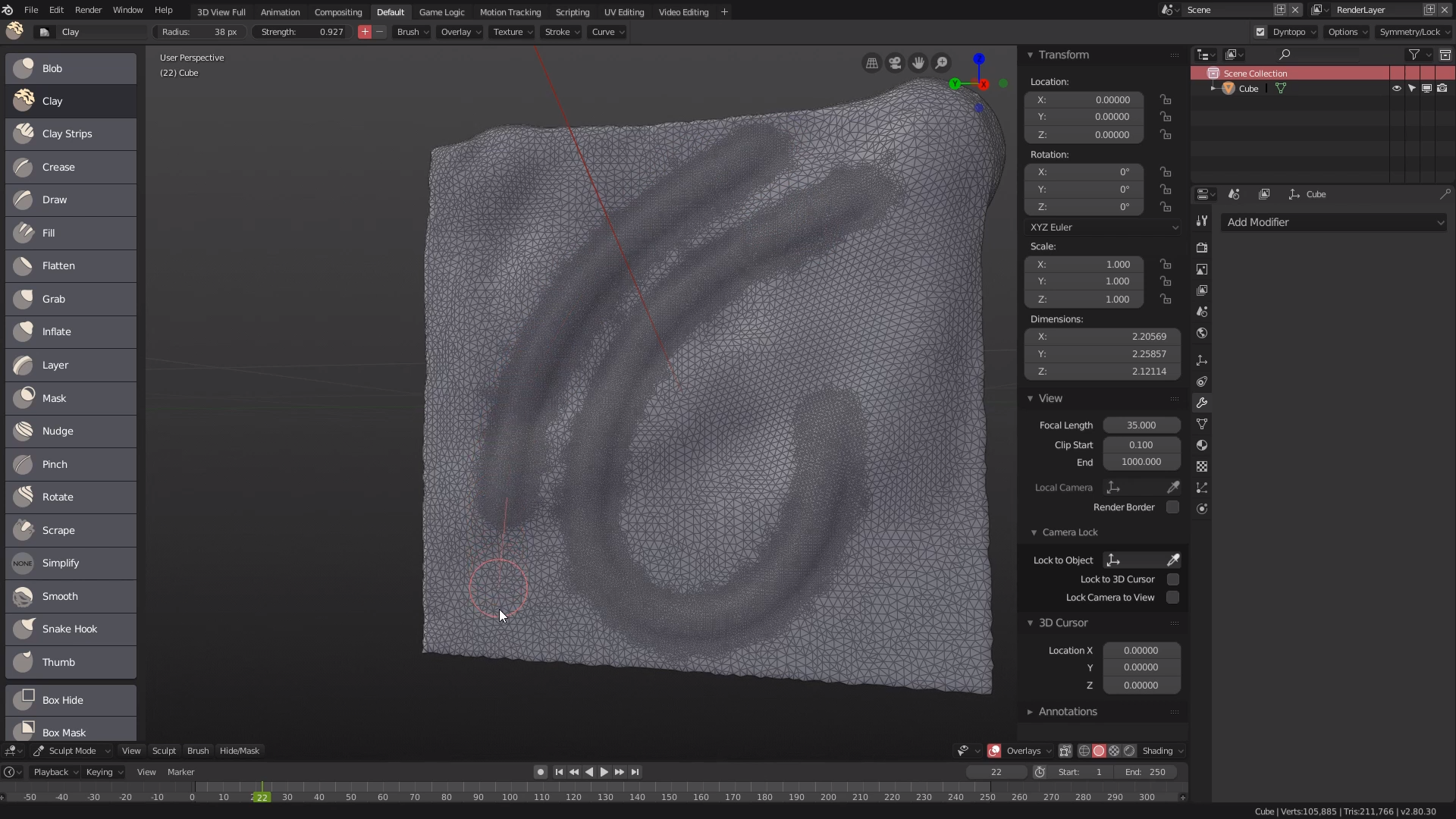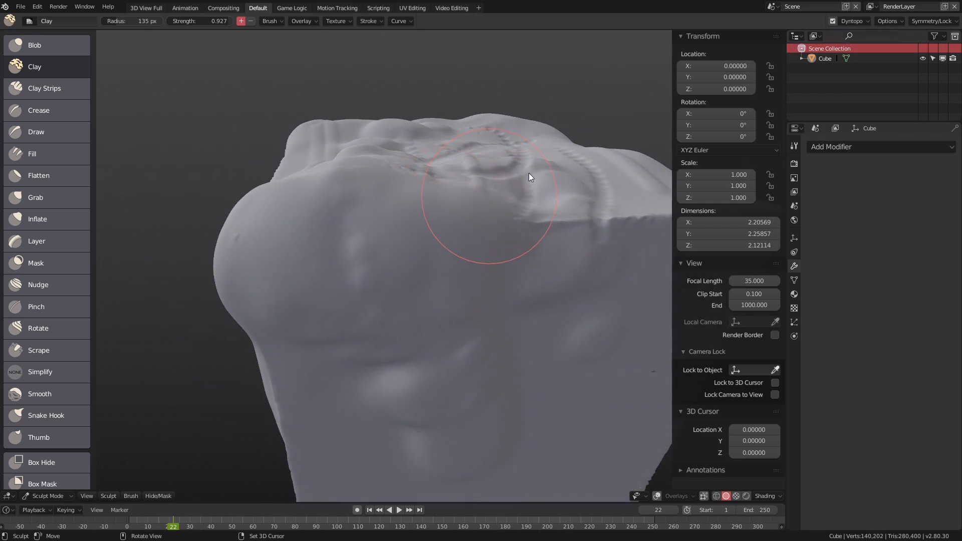 그래서 만약에 중간에 뿔이 솟는다던가, 중간에 무언가가 있는 형태라면 정육면체가 아니라 거기에 맞춰서 모델링을 걸어서 스컬팅을 하는게 좋다.