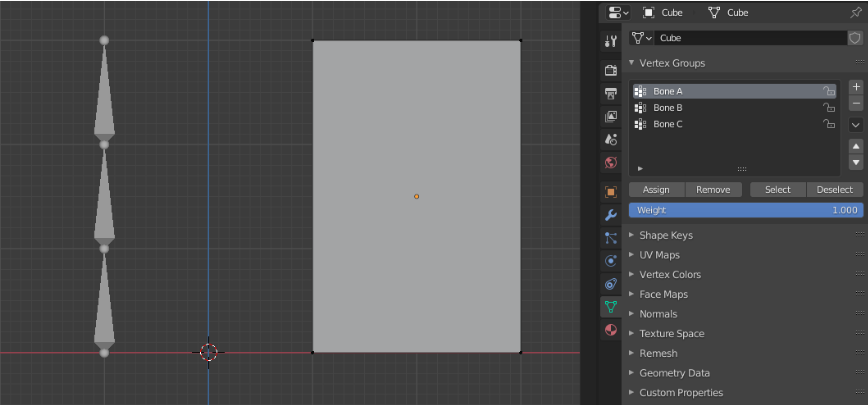 (그냥 오브젝트에 아마추어 모디파이어를 추가 시켜주고 Vertex Groups는 추가시켜주지 않는다.)